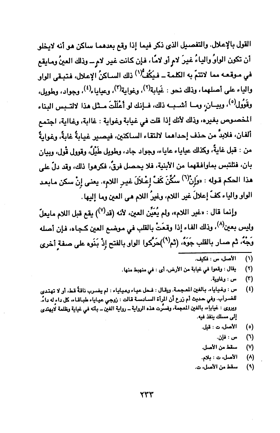 وإنما قال: "غير اللام"، ولم يعين العين، لأنه (قد) يقع قبل اللام ما يعل وليس بعين، وذلك الفاء إذا وقعت بالقلب في موضع العين كجاه، فإن أصله وجه، ثم صار بالقلب جوه، (ثم) حركوا الواو بالفتح إذ بنوه على صفة أخرى