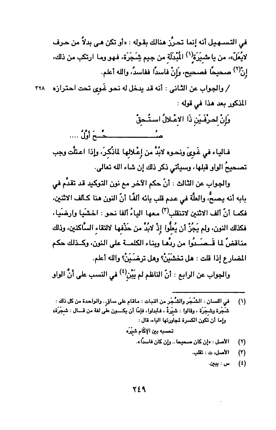 والجواب عن الرابع: أن الناظم لم يبن في النسب على أن الواو