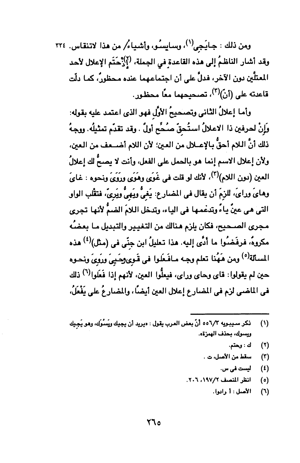 وأما إعلال الثاني وتصحيح الأول فهو الذي اعتمد عليه بقوله: وإن لحرفين ذا الاعلال استحق صحح أول. وقد تقدم تمثيله. ووجه ذلك أن اللام أحق بالإعلال من العين؛ لأن اللام أضعف من العين، ولأن إعلال الاسم إنما هو بالحمل على الفعل، وأنت لا يصح لك إعلال العين (دون اللام)، لأنك لو قلت في غوي وهوي وروي ونحوه: غاي وهاي وراي، للزم أن يقال في المضارع: يغي ويهي ويري، فتقلب الواو التي هي عين ياء وتدعمها في الياء، وتدخل اللام الضم لأنها تجري مجرى الصحيح، فكان يلزم هنالك من التغيير والتبديل ما بعضه مكروه، فرفضوا ما أدى إليه. هذا تعليل ابن جني في (مثل) هذه المسألة ومن ههنا تعلم وجه ما فعلوا في قوي وحيي وروي ونحوه حين لم يقولوا: قاي وحاي وراي، فيعلوا العين، لأنهم إذا فعلوا ذلك في الماضي لزم في المضارع إعلال العين أيضا، والمضارع على يفعل،