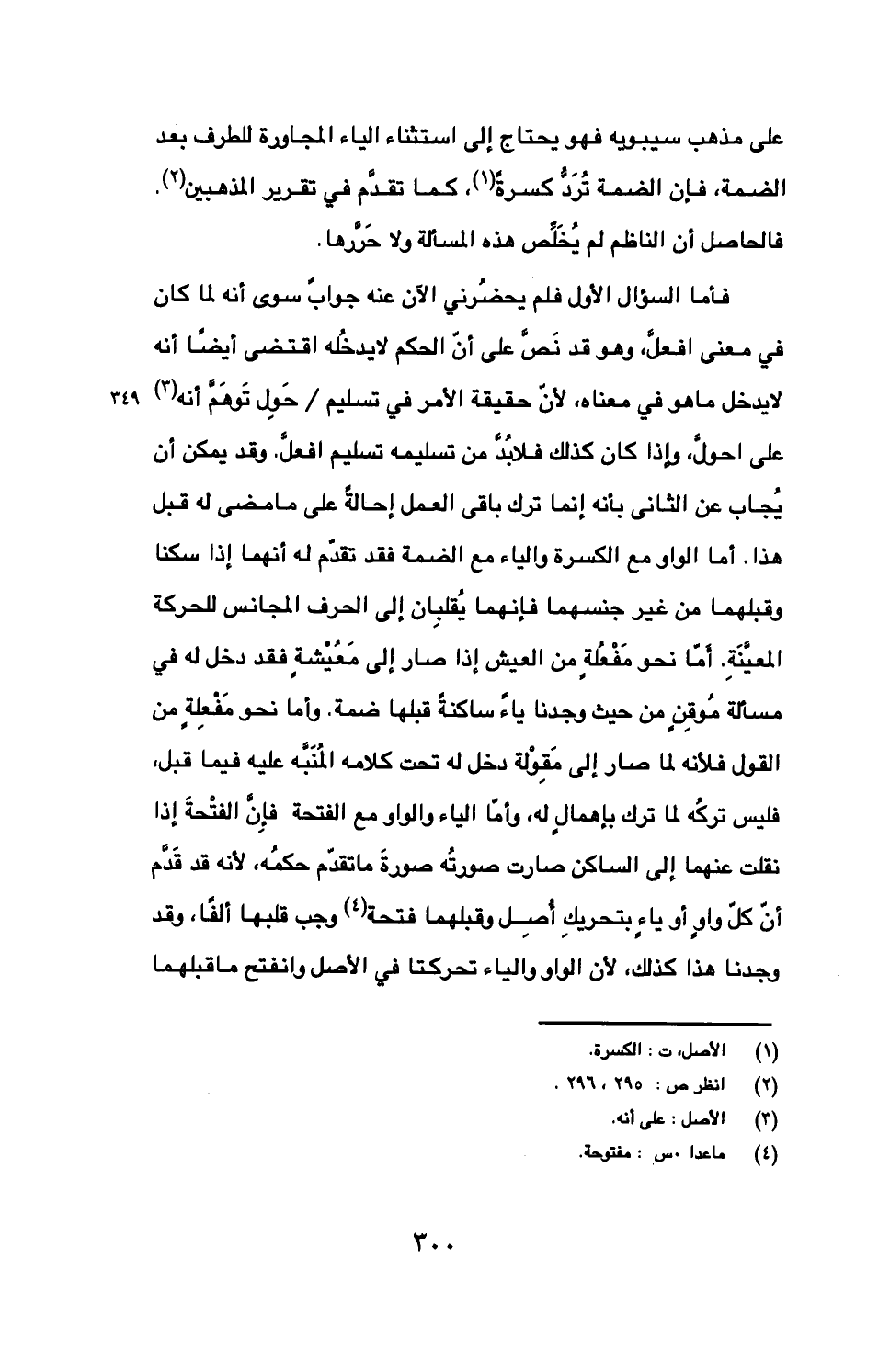 على مذهب سيبويه فهو يحتاج إلى استثناء الياء المجاورة للطرف بعد الضمة، فإن الضمة ترد كسرة، كما تقدم في تقرير المذهبين فالحاصل أن الناظم لم يخلص هذه المسألة ولا حررها.