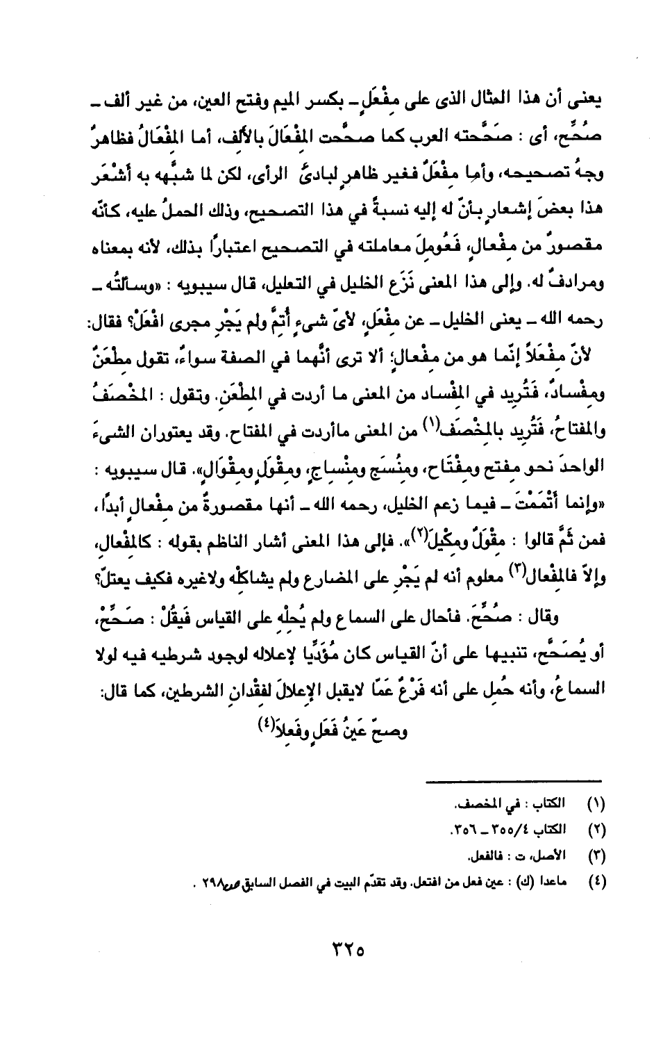يعني أن هذا المثال على مفعل- بكسر الميم وفتح العين، من غير ألف- صحح، أي: صححته العرب كما صححت المفعال بالألف، أما المفعال فظاهر وجه تصحيحه، وأما مفعل فغير ظاهر لبادى الرأي، لكن لما شبهه به أشعر هذا بعض إشعار بأن له إليه نسبة في هذا التصحيح، وذلك الحمل عليه، كأنه مقصور من مفعال، فعومل معاملته في التصحيح اعتبارا بذلك، لأنه بمعناه ومرادف له. وإلى هذا المعنى نزع الخليل في التعليل، قال سيبويه: "وسألته- رحمه الله- يعني الخليل- عن مفعل، لأي شيء أتم ولم يجر مجرى افعل؟ فقال: لأن مفعلا إنما هو من مفعال؛ ألا ترى أنهما في الصفة سواء، تقول مطعن ومفساد، فتريد في المفساد من المعنى ما أردت في المطعن. وتقول: المخصف والمفتاح، فتريد بالمخصف من المعنى ما أردت في المفتاح. وقد يعتوران الشيء الواحد نحو مفتح ومفتاح، ومنسج ومنساج، ومقول ومقوال". قال سيبويه: "وإنما أتممت- فيما زعم الخليل، رحمه الله- أنها مقصورة من مفعال أبدا، فمن ثم قالوا: مقول ومكيل". فإلى هذا المعنى أشار الناظم بقوله: كالمفعال، وإلا فالمفعال معلوم أنه لم يجر على المضارع ولم يشاكله ولا غيره فكيف يعتل؟
