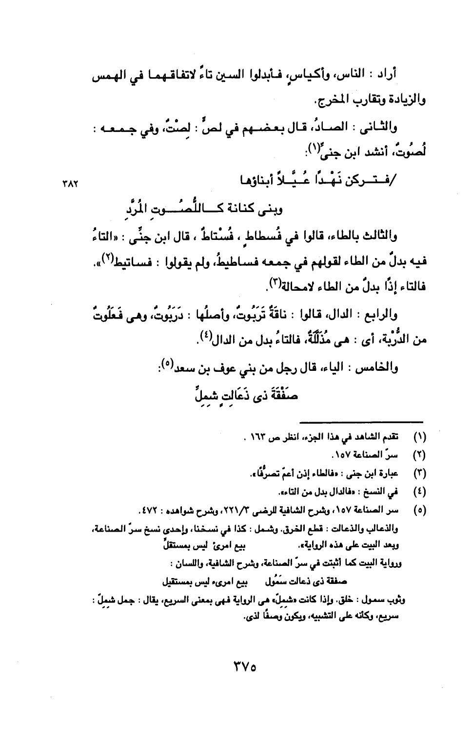 والثاني: الصاد، قال بعضهم في لص: لصت، وفي جمعه: لصوت أنشد ابن جنى: