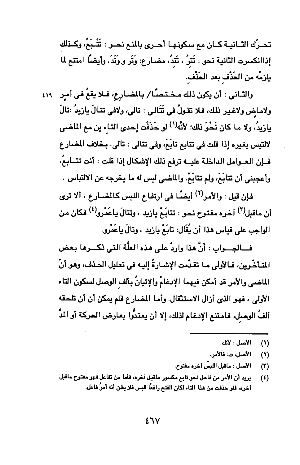 فالجواب: أن هذا وارد على هذه العلة التي ذكرها بعض المتأخرين، فالأولى ما تقدمت الإشارة إليه في تعليل الحذف، وهو أن الماضي والأمر قد أمكن فيهما الإدغام والإتيان بألف الوصل لسكون التاء الأولى، فهو الذي أزال الاستثقال. وأما المضارع فلم يمكن أن تلحقه ألف الوصل، فامتنع الإدغام لذلك، إلا أن يعتدوا بعارض الحركة أو المد