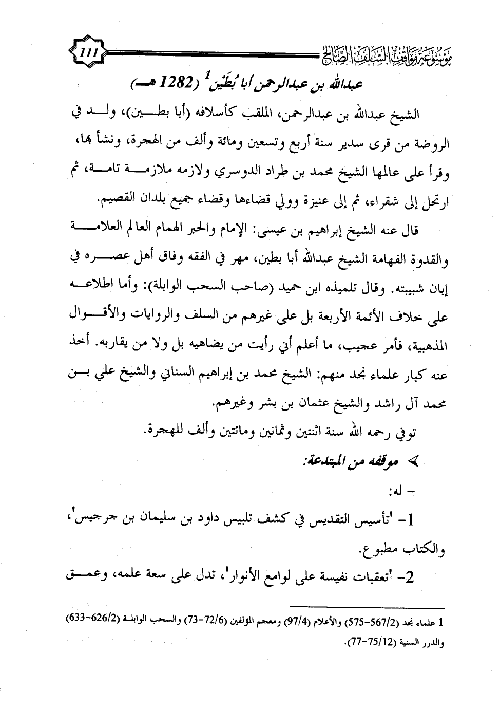 (¬1) علماء نجد (2/ 567 - 575) والأعلام (4/ 97) ومعجم المؤلفين (6/ 72 - 73) والسحب الوابلة (2/ 626 - 633) والدرر السنية (12/ 75 - 77).