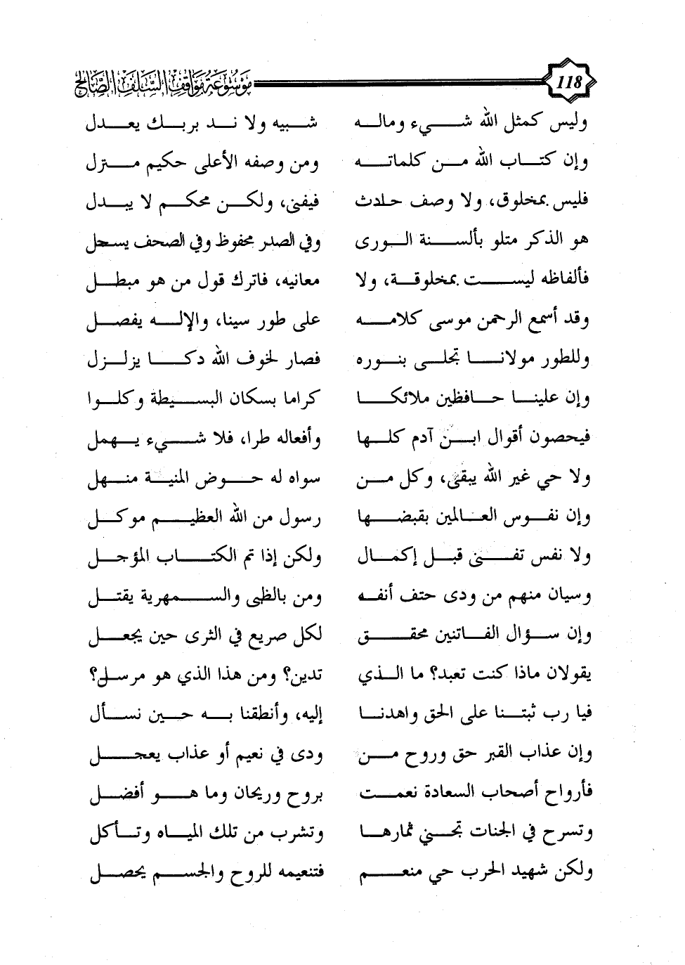 وليس كمثل الله شيء وماله ... شبيه ولا ند بربك يعدل
