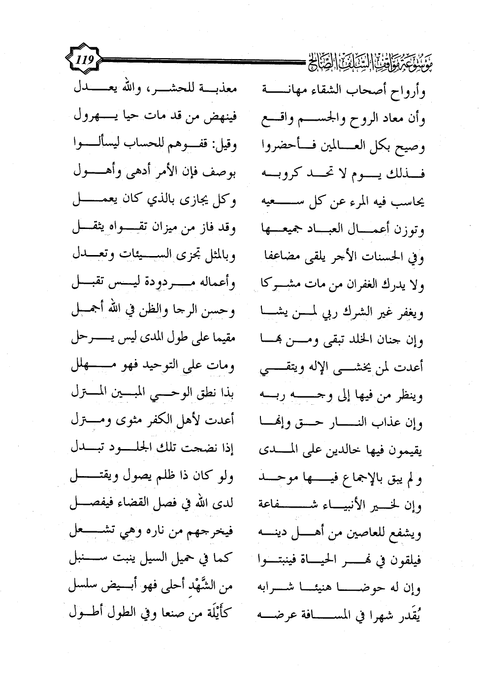 وتوزن أعمال العباد جميعها ... وقد فاز من ميزان تقواه يثقل
