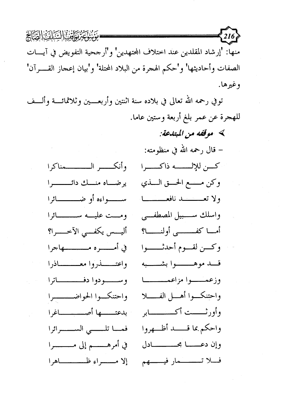 - قال رحمه الله في منظومته: