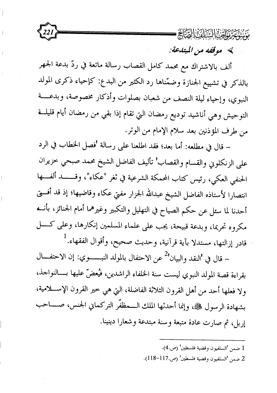 (¬2) ضمن 'السلفيون وقضية فلسطين' (ص.117 - 118).