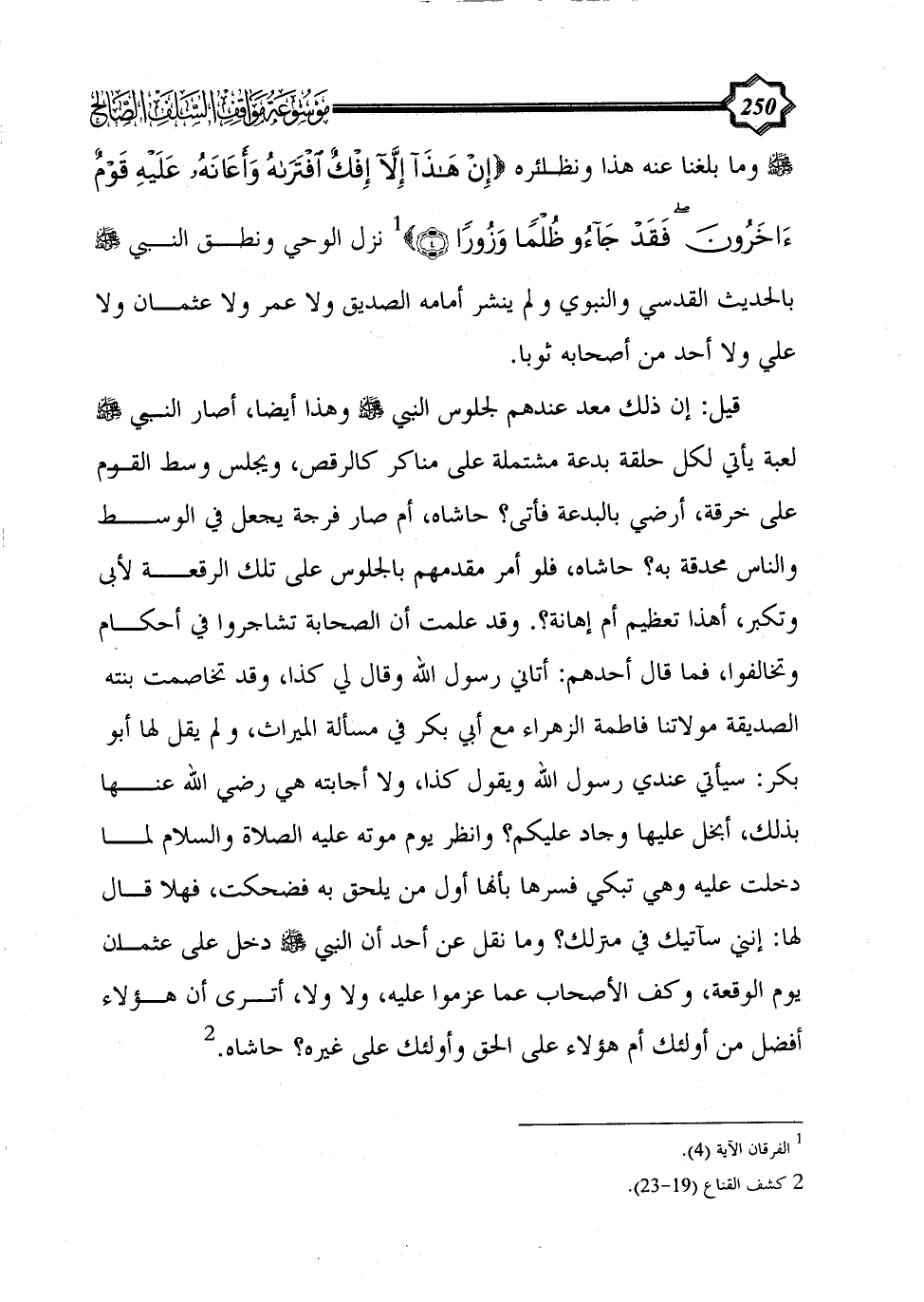 صلى الله عليه وسلم - وما بلغنا عنه هذا ونظائره {إِنْ هَذَا إِلَّا إِفْكٌ افْتَرَاهُ وَأَعَانَهُ عَلَيْهِ قَوْمٌ آَخَرُونَ فَقَدْ جَاءُوا ظُلْمًا وَزُورًا (4)} (¬1) نزل الوحي ونطق النبي - صلى الله عليه وسلم - بالحديث القدسي والنبوي ولم ينشر أمامه الصديق ولا عمر ولا عثمان ولا علي ولا أحد من أصحابه ثوباً.
