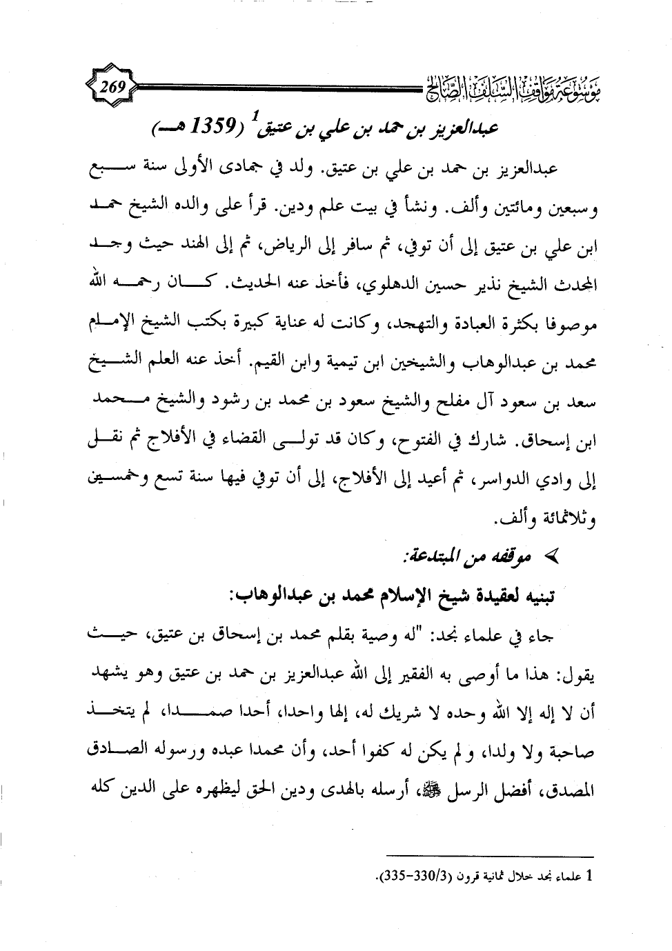 (¬1) علماء نجد خلال ثمانية قرون (3/ 330 - 335).