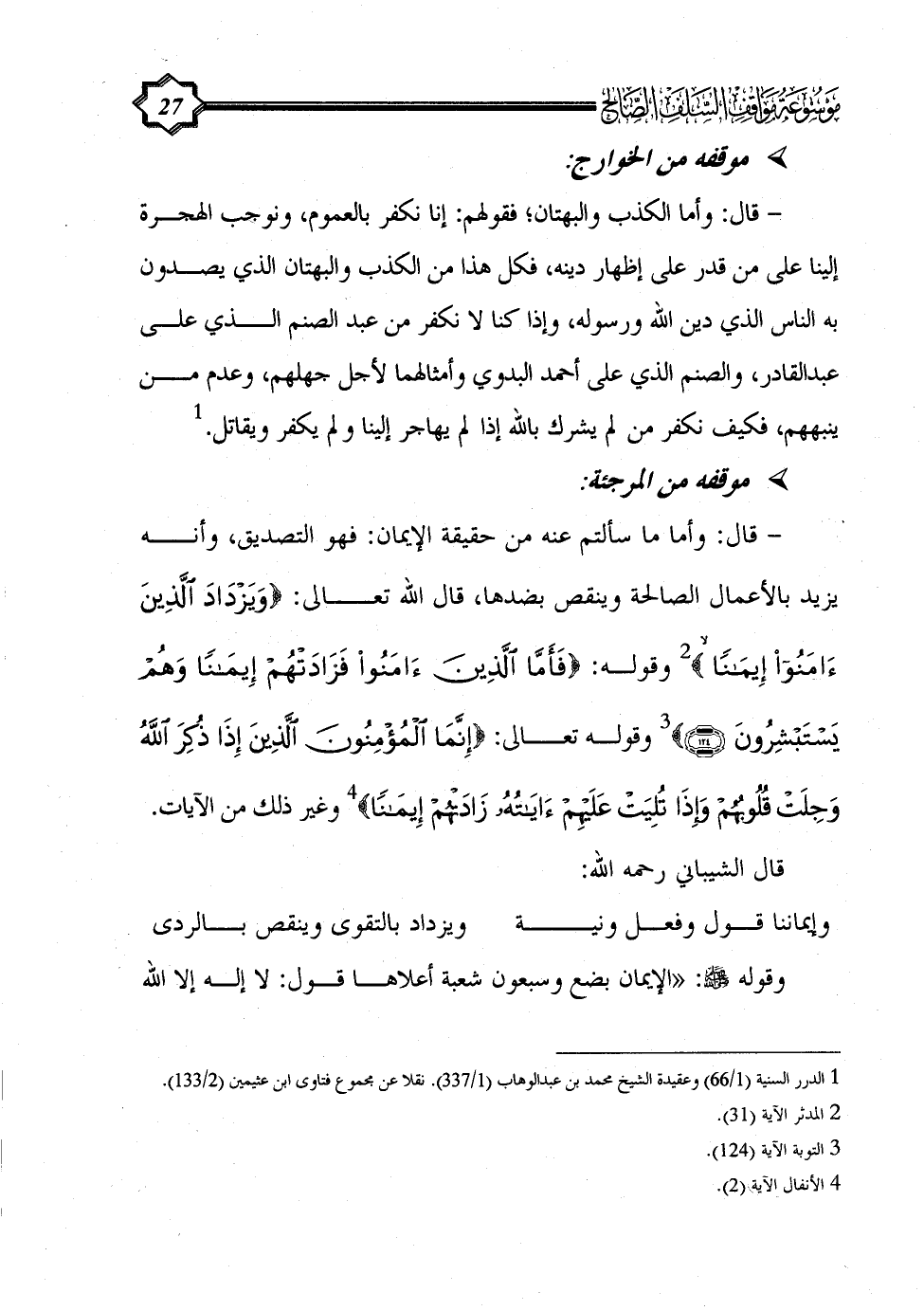 (¬1) الدرر السنية (1/ 66) وعقيدة الشيخ محمد بن عبد الوهاب (1/ 337). نقلا عن مجموع فتاوى ابن عثيمين (2/ 133).