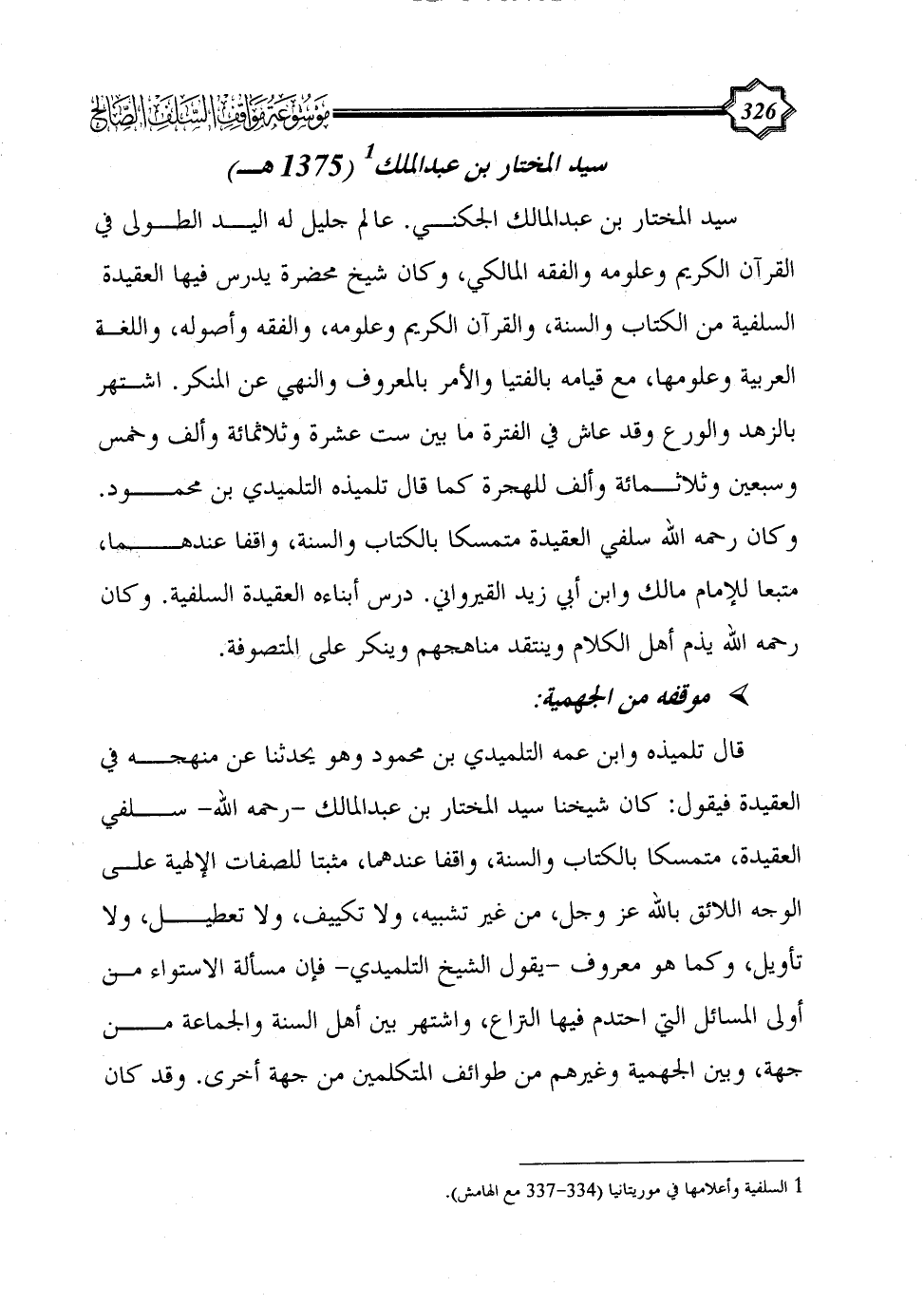 (¬1) السلفية وأعلامها في موريتانيا (334 - 337 مع الهامش).