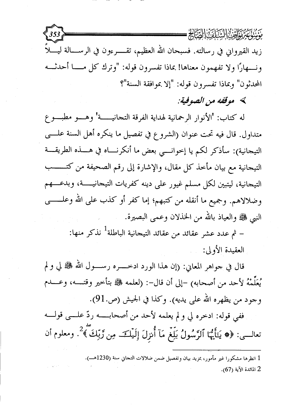 (¬1) انظرها مشكورا غير مأمور، بمزيد بيان وتفصيل ضمن ضلالات التجاني سنة (1230هـ).