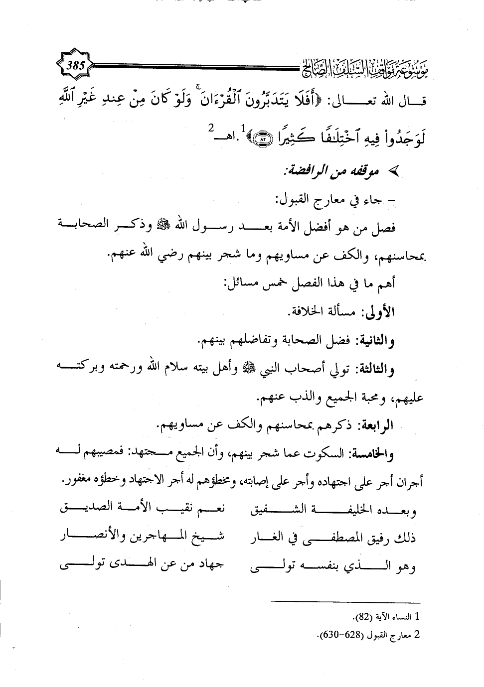 - جاء في معارج القبول: