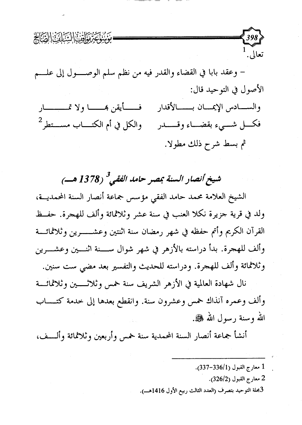 شيخ أنصار السنة بمصر حامد الفقي (¬3) (1378 هـ)
