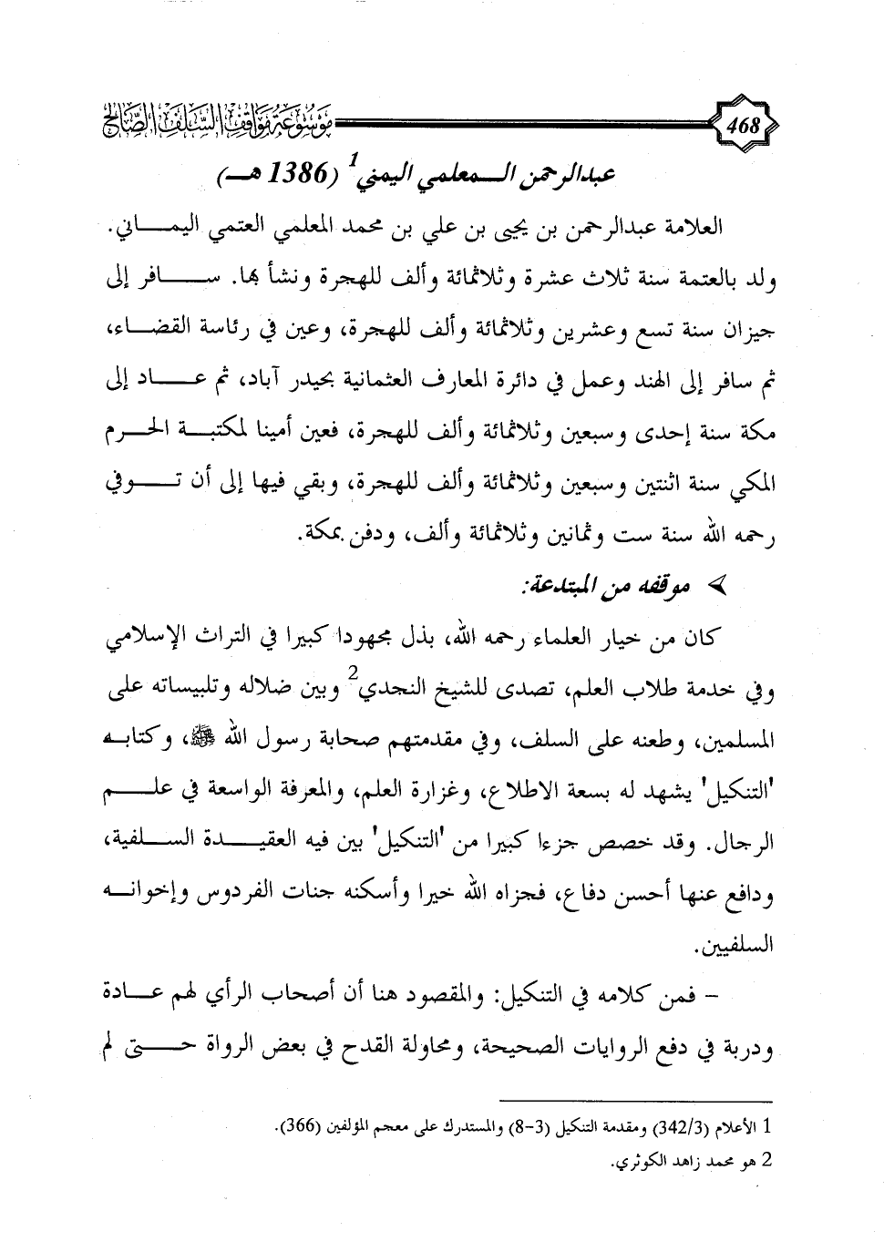 (¬1) الأعلام (3/ 342) ومقدمة التنكيل (3 - 8) والمستدرك على معجم المؤلفين (366).