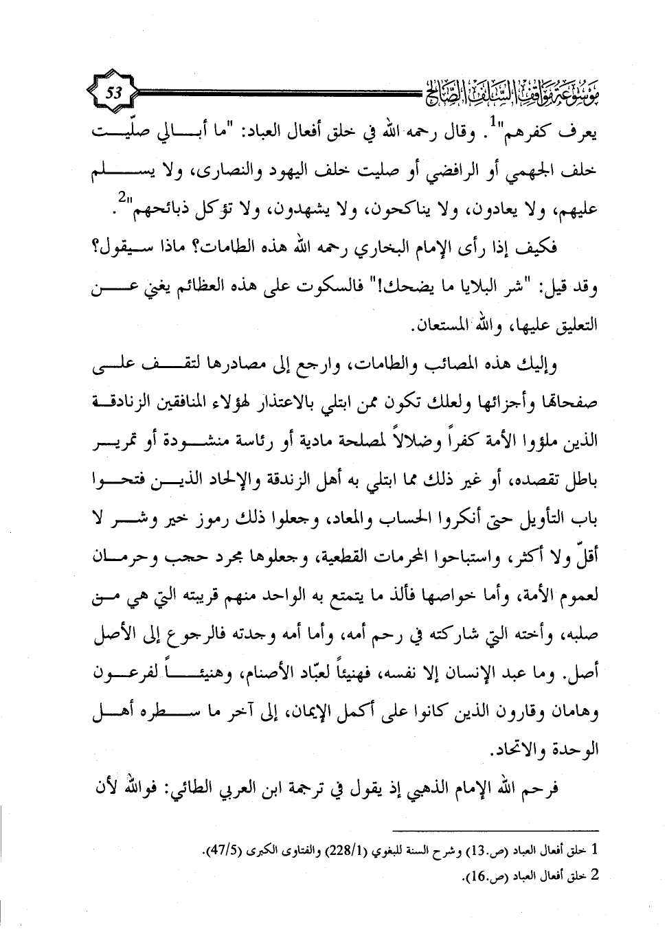 (¬1) خلق أفعال العباد (ص.13) وشرح السنة للبغوي (1/ 228) والفتاوى الكبرى (5/ 47).