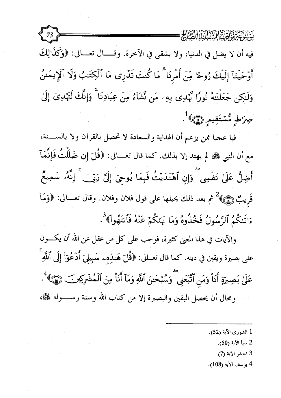 والآيات في هذا المعنى كثيرة، فوجب على كل من عقل عن الله أن يكون على بصيرة ويقين في دينه. كما قال تعالى: {قُلْ هَذِهِ سَبِيلِي أَدْعُو إِلَى اللَّهِ عَلَى بَصِيرَةٍ أَنَا وَمَنِ اتَّبَعَنِي وَسُبْحَانَ اللَّهِ وَمَا أَنَا مِنَ الْمُشْرِكِينَ (108)} (¬4).