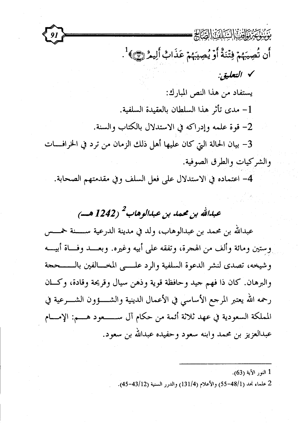 1 - مدى تأثر هذا السلطان بالعقيدة السلفية.