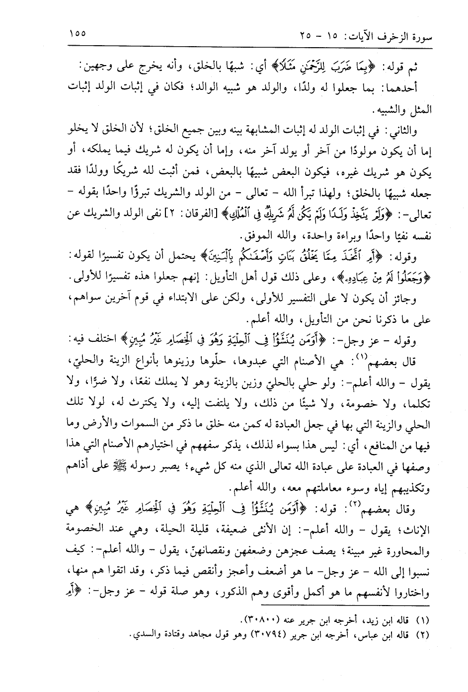 وقال بعصهم: قوله: (أَوَمَنْ يُنَشَّأُ فِي الْحِلْيَةِ وَهُوَ فِي الْخِصَامِ غَيْرُ مُبِينٍ) وهي الإناث؛ يقول - واللَّه أعلم -: إن الأنثى ضعيفة، قليلة الحيلة، وهي عند الخصومة والمحاورة غير مبينة؛ يصف عجزهن وضعفهن ونقصانهنّ، يقول - واللَّه أعلم -: كيف نسبوا إلى اللَّه - عَزَّ وَجَلَّ - ما هو أضعف وأعجز وأنقص فيما ذكر، وقد اتقوا هم منها، واختاروا لأنفسهم ما هو أكمل وأقوى وهم الذكور، وهو صلة قوله - عَزَّ وَجَلَّ -: (أَمِ