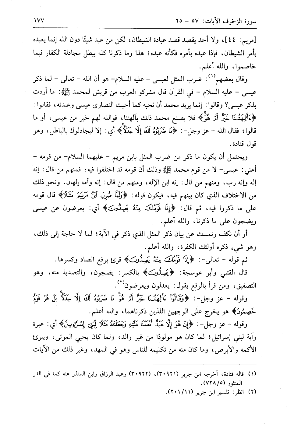 ويحتمل أن يكون ما ذكر من ضرب المثل بابن مريم - عليهما السلام - من قومه - أعني: عيسى - لا من قوم مُحَمَّد - صَلَّى اللَّهُ عَلَيهِ وَسَلَّمَ - وذلك أن قومه قد اختلفوا فيه؛ فمنهم من قال: إنه إله وإنه رب، ومنهم من قال: إنه ابن الإله، ومنهم من قال: إنه وأمه إلهان، ونحو ذلك من الاختلاف الذي كان بينهم فيه، فيكون قوله: (وَلَمَّا ضُرِبَ ابْنُ مَرْيَمَ مَثَلًا) قال قومه على ما ذكروا فيه، ثم قال: (إِذَا قَوْمُكَ مِنْهُ يَصِدُّونَ) أي: يعرضون عن عيسى ويضجون على ما ذكرنا، واللَّه أعلم.