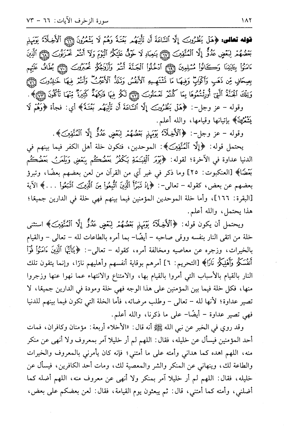 وقوله - عَزَّ وَجَلَّ -: (الْأَخِلَّاءُ يَوْمَئِذٍ بَعْضُهُمْ لِبَعْضٍ عَدُوٌّ إِلَّا الْمُتَّقِينَ (67).