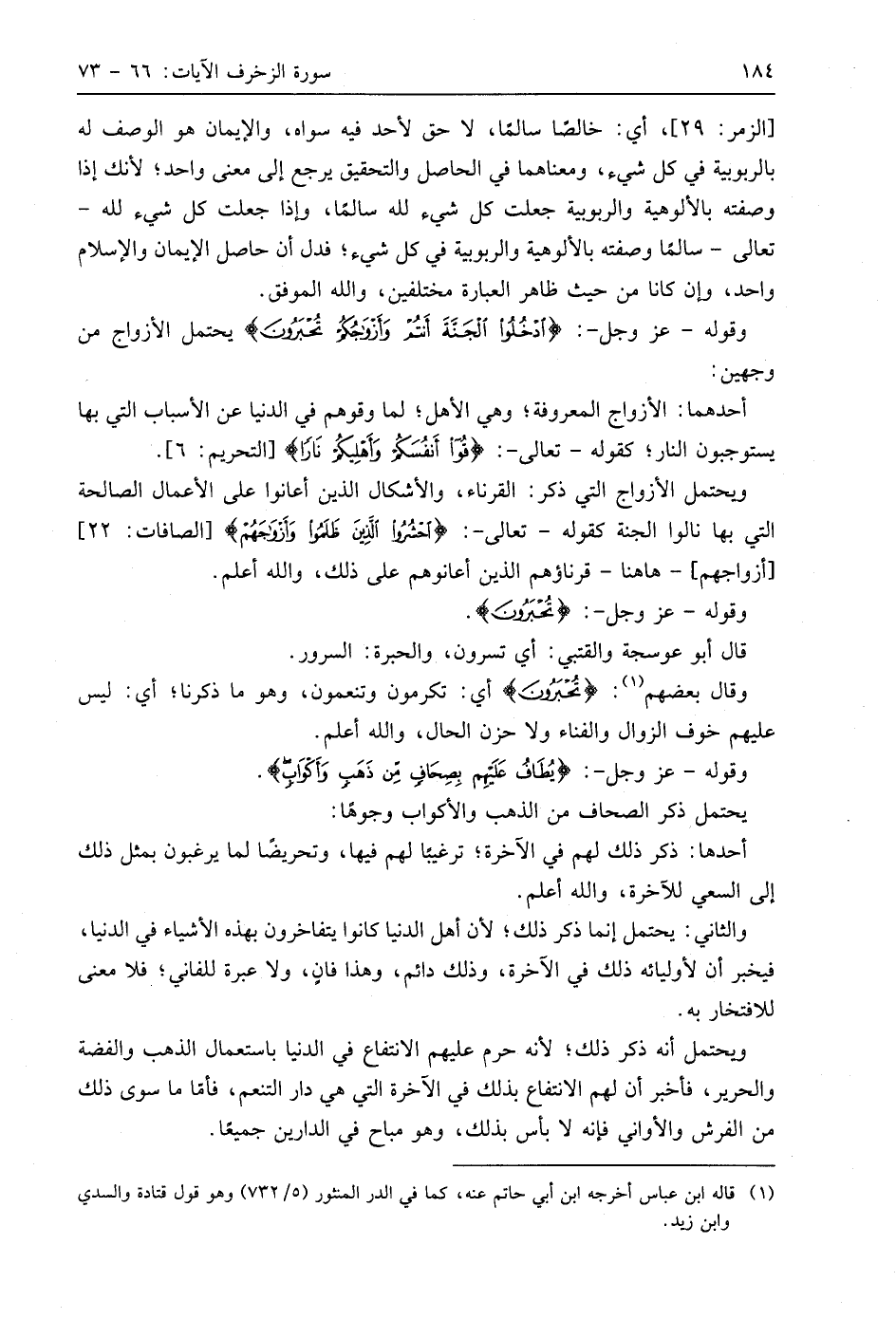 وقوله - عَزَّ وَجَلَّ -: (ادْخُلُوا الْجَنَّةَ أَنْتُمْ وَأَزْوَاجُكُمْ تُحْبَرُونَ (70) يحتمل الأزواج من وجهين: