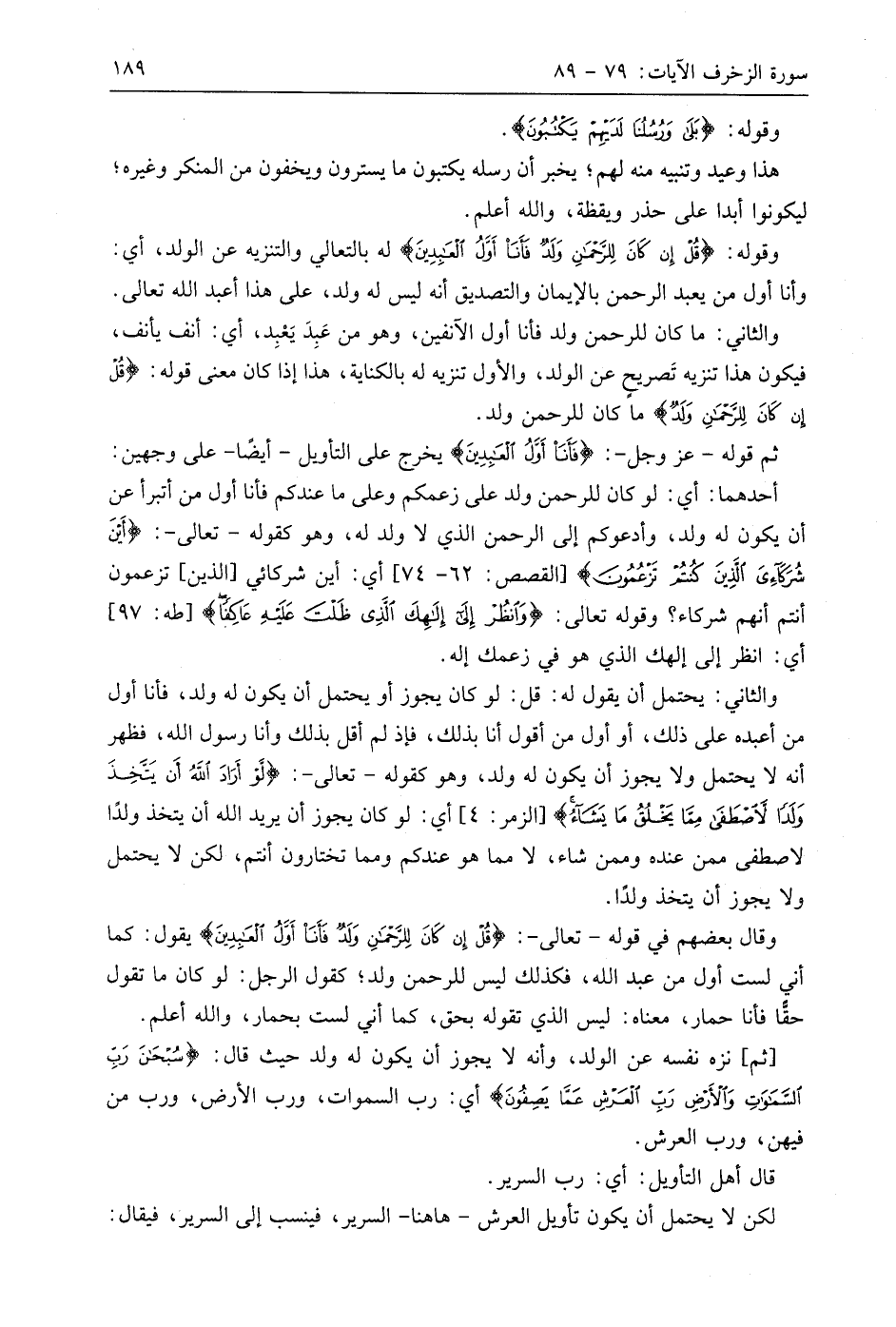 وقَالَ بَعْضُهُمْ في قوله - تعالى -: (قُلْ إِنْ كَانَ لِلرَّحْمَنِ وَلَدٌ فَأَنَا أَوَّلُ الْعَابِدِينَ) يقول: كما أني لست أول من عبد اللَّه، فكذلك ليس للرحمن ولد؛ كقول الرجل: لو كان ما تقول حقًّا فأنا حمار، معناه: ليس الذي تقوله بحق، كما أني لست بحمار، واللَّه أعلم.