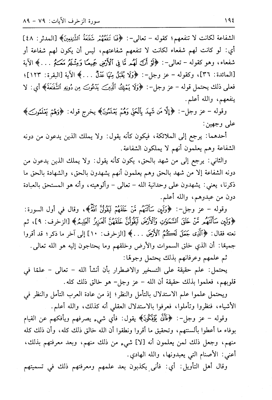 وقوله - عَزَّ وَجَلَّ -: (وَلَئِنْ سَأَلْتَهُمْ مَنْ خَلَقَهُمْ لَيَقُولُنَّ اللَّهُ ... (87) وقال في أول السورة: (وَلَئِنْ سَأَلْتَهُمْ مَنْ خَلَقَ السَّمَاوَاتِ وَالْأَرْضَ لَيَقُولُنَّ خَلَقَهُنَّ الْعَزِيزُ الْعَلِيمُ)، ثم نعته فقال: (الَّذِي جَعَلَ لَكُمُ الْأَرْضَ. . .)، إلى آخر ما ذكر؛ قد أقروا جميعًا: أن الذي خلق السماوات والأرض وخلقهم وما يحتاجون إليه هو اللَّه تعالى.