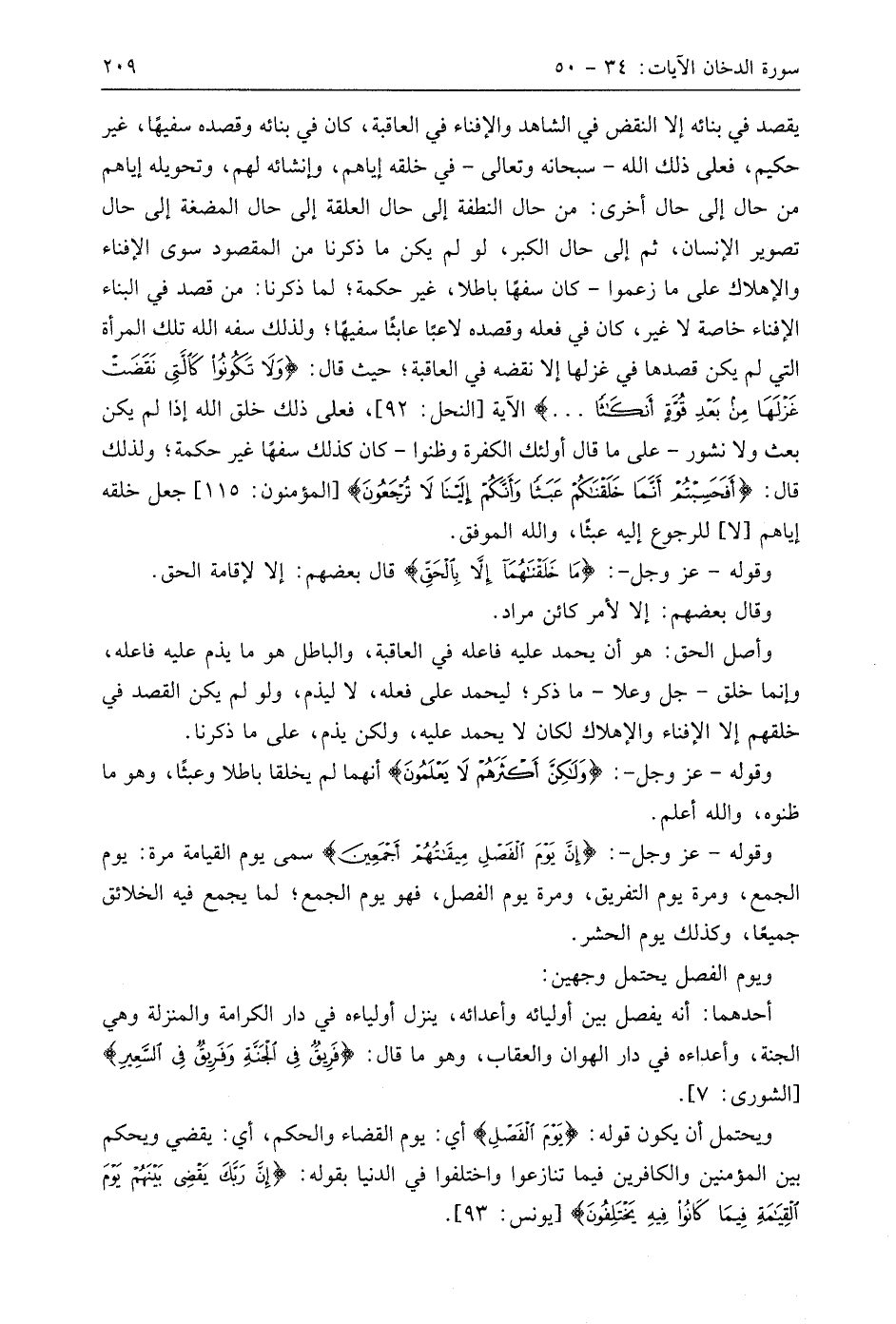 وقوله - عَزَّ وَجَلَّ -: (مَا خَلَقْنَاهُمَا إِلَّا بِالْحَقِّ ... (39) قَالَ بَعْضُهُمْ: إلا لإقامة الحق.