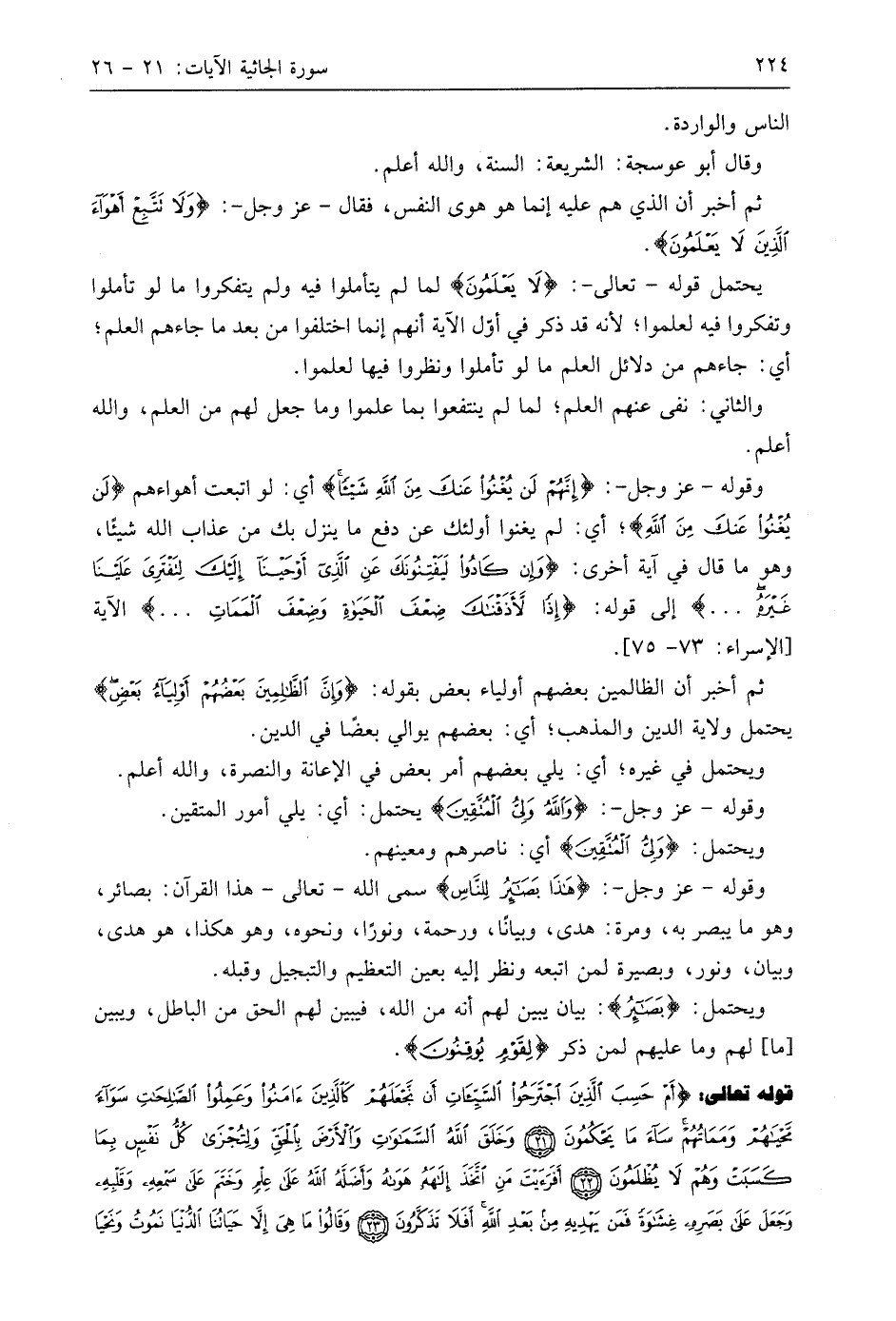 ثم أخبر أن الذي هم عليه إنما هو هوى النفس، فقال - عَزَّ وَجَلَّ -: (وَلَا تَتَّبِعْ أَهْوَاءَ الَّذِينَ لَا يَعْلَمُونَ).