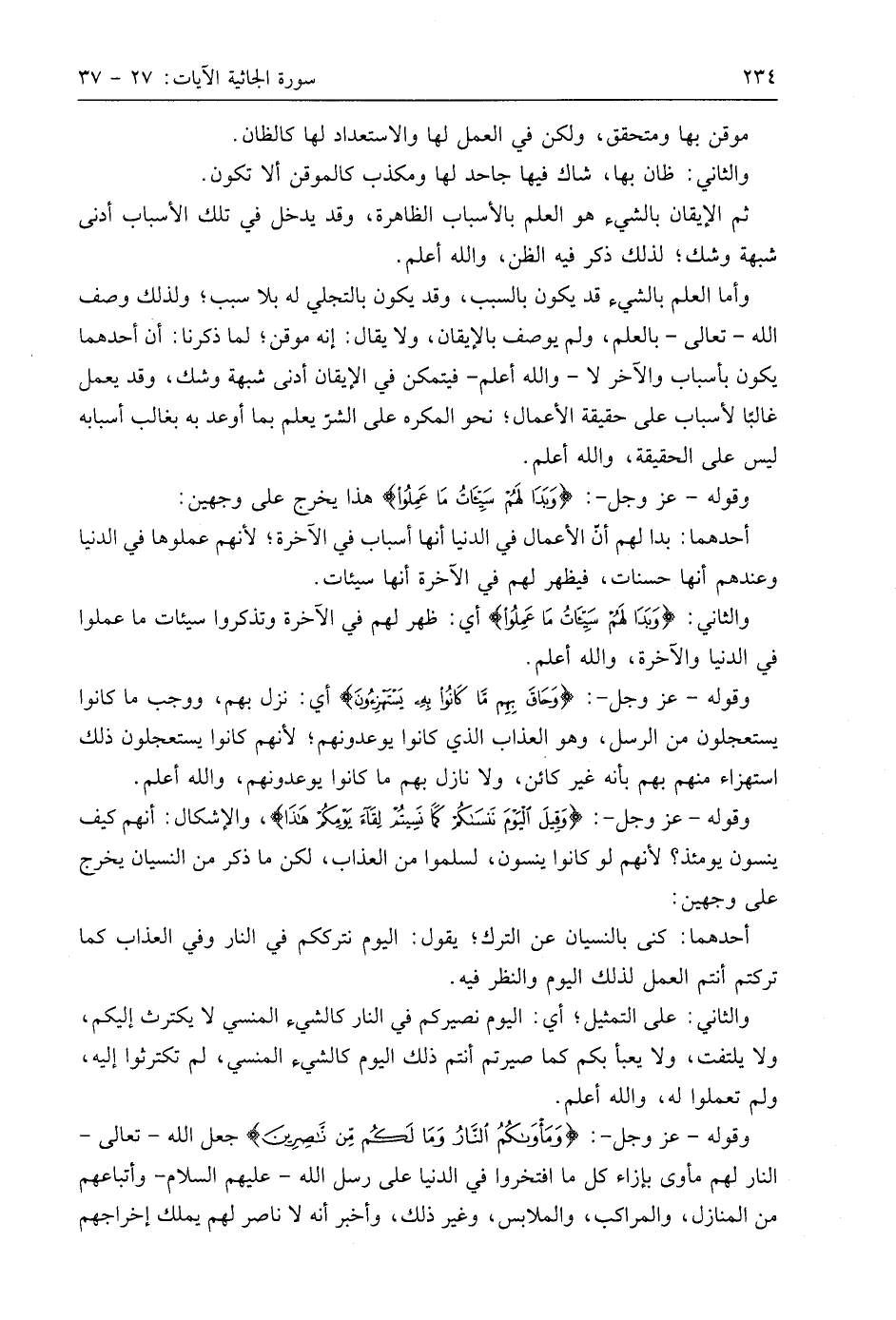 وقوله - عَزَّ وَجَلَّ -: (وَبَدَا لَهُمْ سَيِّئَاتُ مَا عَمِلُوا وَحَاقَ بِهِمْ مَا كَانُوا بِهِ يَسْتَهْزِءُونَ (33) هذا يخرج على وجهين:
