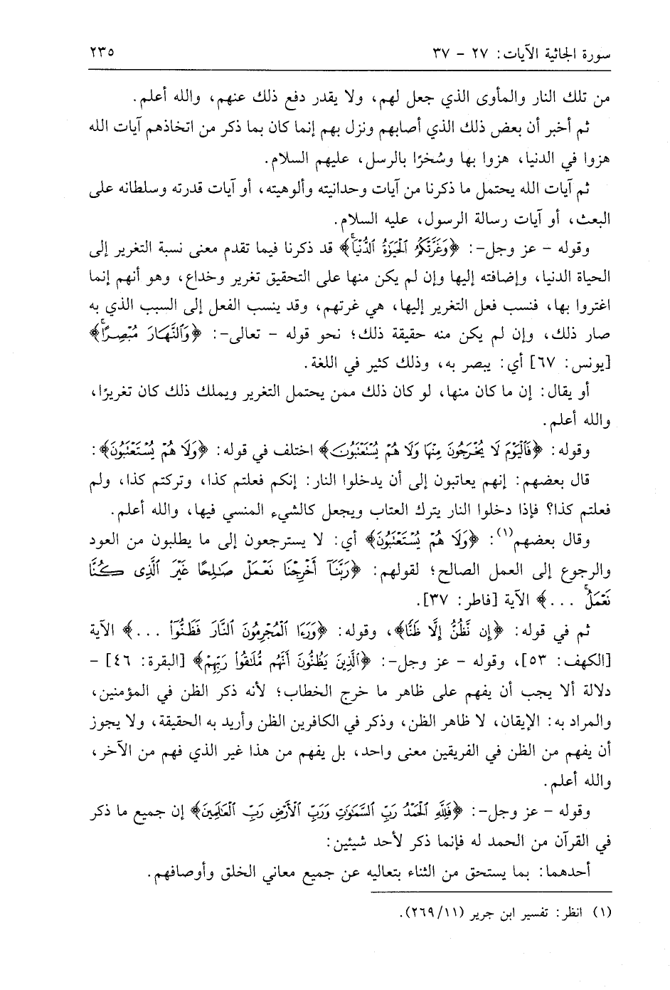 وقوله - عَزَّ وَجَلَّ -: (فَلِلَّهِ الْحَمْدُ رَبِّ السَّمَاوَاتِ وَرَبِّ الْأَرْضِ رَبِّ الْعَالَمِينَ (36) إن جميع ما ذكر في القرآن من الحمد له فإنما ذكر لأحد شيئين: