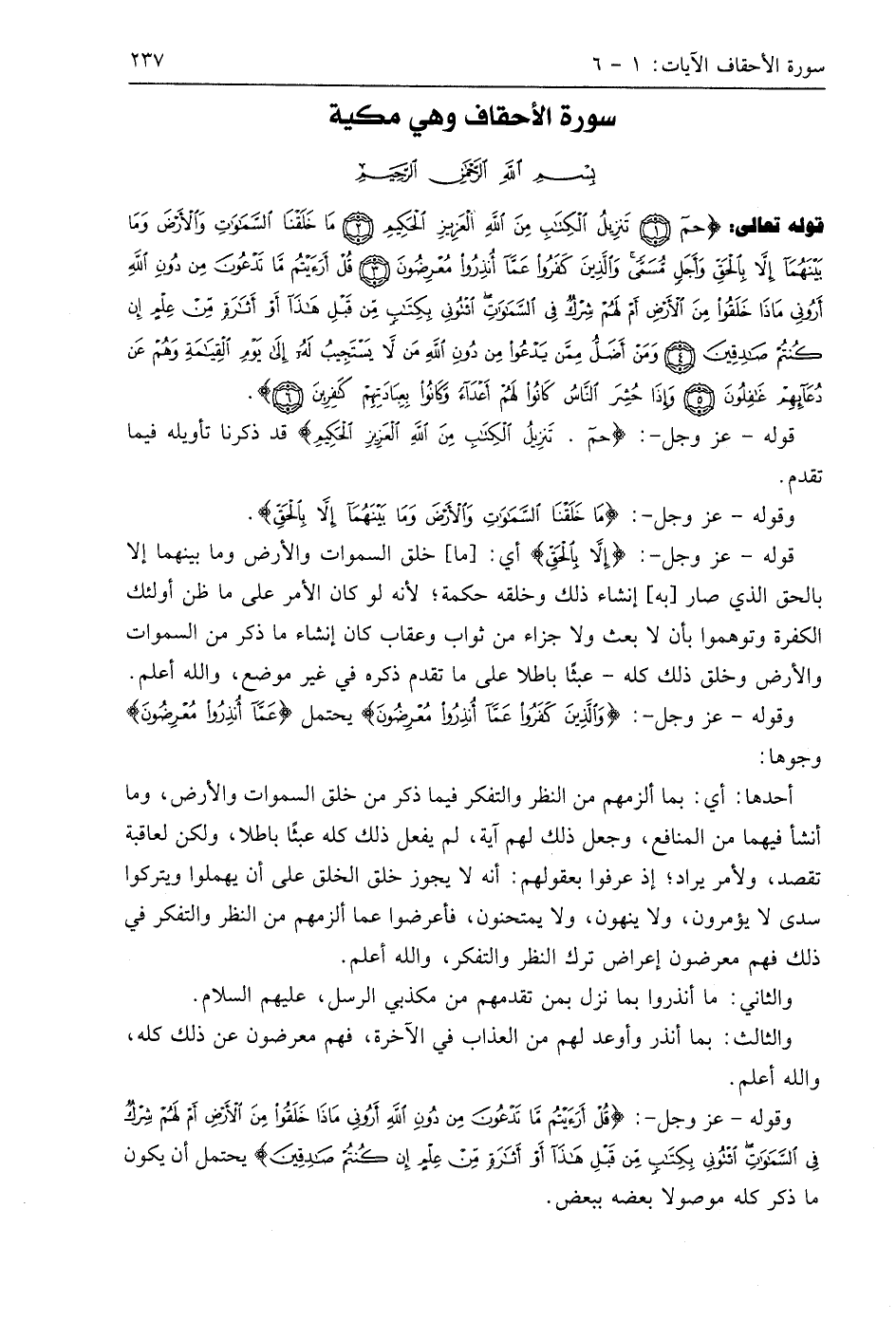 وقوله - عَزَّ وَجَلَّ -: (قُلْ أَرَأَيْتُمْ مَا تَدْعُونَ مِنْ دُونِ اللَّهِ أَرُونِي مَاذَا خَلَقُوا مِنَ الْأَرْضِ أَمْ لَهُمْ شِرْكٌ فِي السَّمَاوَاتِ ائْتُونِي بِكِتَابٍ مِنْ قَبْلِ هَذَا أَوْ أَثَارَةٍ مِنْ عِلْمٍ إِنْ كُنْتُمْ صَادِقِينَ (4) يحتمل أن يكون ما ذكر كله موصولا بعضه ببعض.