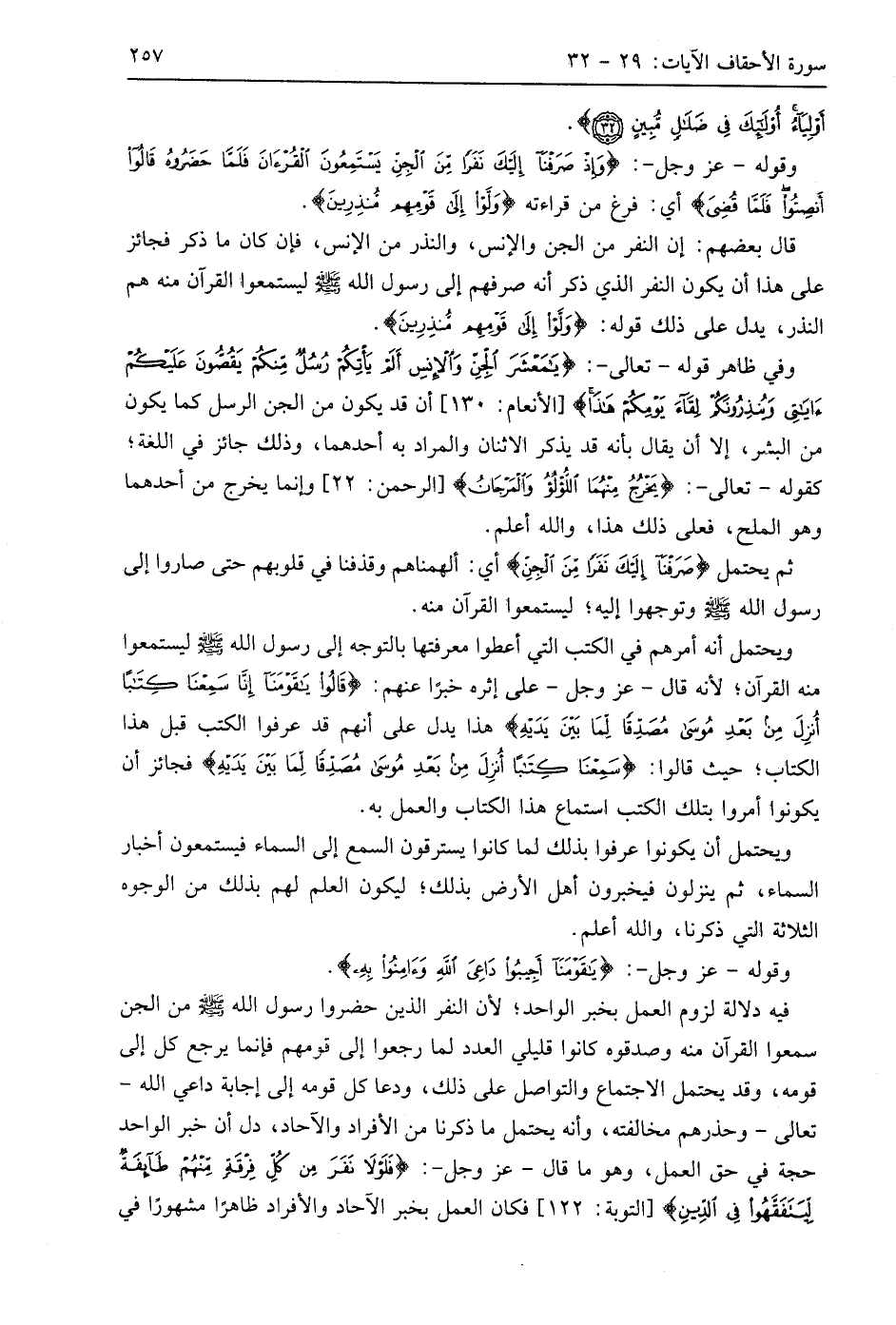 وقوله - عَزَّ وَجَلَّ -: (وَإِذْ صَرَفْنَا إِلَيْكَ نَفَرًا مِنَ الْجِنِّ يَسْتَمِعُونَ الْقُرْآنَ فَلَمَّا حَضَرُوهُ قَالُوا أَنْصِتُوا فَلَمَّا قُضِيَ ... (29) أي: فرغ من قراءته (وَلَّوْا إِلَى قَوْمِهِمْ مُنْذِرِينَ).