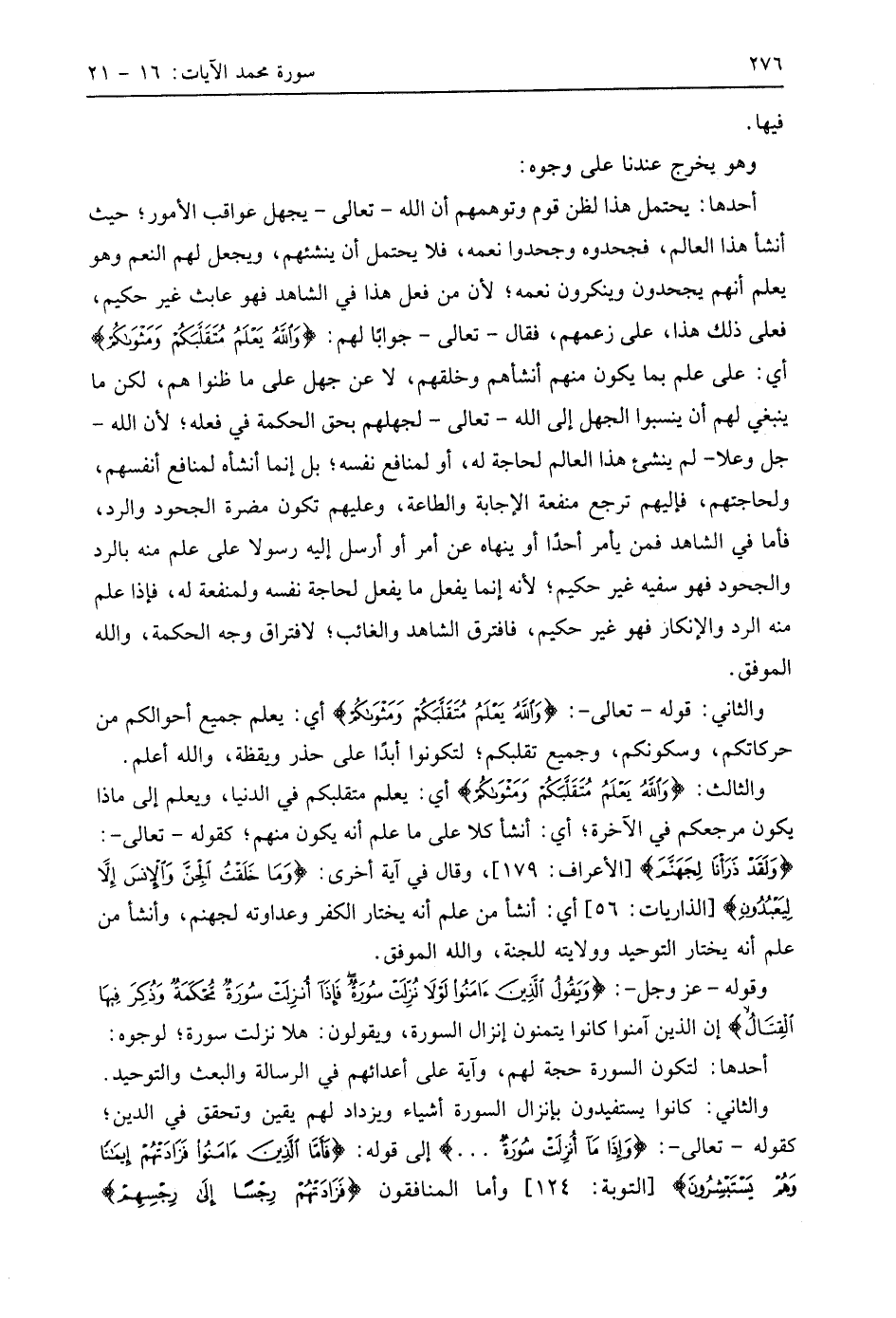 أحمدها: يحتمل هذا لظن قوم وتوهمهم أن اللَّه - تعالى - يجهل عواقب الأمور؛ حيث أنشأ هذا العالم، فجحدوه وجحدوا نعمه، فلا يحتمل أن ينشئهم، ويجعل لهم النعم وهو يعلم أنهم يجحدون وينكرون نعمه؛ لأن من فعل هذا في الشاهد فهو عابث غير حكيم، فعلى ذلك هذا، على زعمهم، فقال - تعالى - جوابًا لهم: (وَاللَّهُ يَعْلَمُ مُتَقَلَّبَكُمْ وَمَثْوَاكُمْ) أي: على علم بما يكون منهم أنشأهم وخلقهم، لا عن جهل على ما ظنوا هم، لكن ما ينبغي لهم أن ينسبوا الجهل إلى اللَّه - تعالى - لجهلهم بحق الحكمة في فعله؛ لأن اللَّه - جل وعلا - لم ينشئ هذا العالم لحاجة له، أو لمنافع نفسه؛ بل إنما أنشأه لمنافع أنفسهم، ولحاجتهم، فإليهم ترجع منفعة الإجابة والطاعة، وعليهم تكون مضرة الجحود والرد، فأما في الشاهد فمن يأمر أحدًا أو ينهاه عن أمر أو أرسل إليه رسولا على علم منه بالرد والجحود فهو سفيه غير حكيم؛ لأنه إنما يفعل ما يفعل لحاجة نفسه ولمنفعة له، فإذا علم منه الرد والإنكار فهو غير حكيم، فافترق الشاهد والغائب؛ لافتراق وجه الحكمة، والله الموفق.