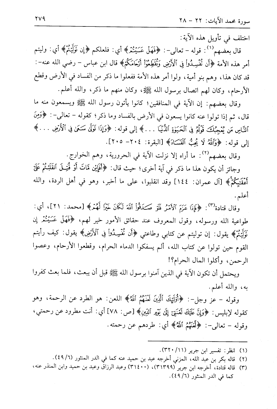 قَالَ بَعْضُهُمْ: قوله - تعالى -: (فَهَلْ عَسَيْتُمْ) أي: فلعلكم (إِنْ تَوَلَّيْتُمْ) أي: وليتم أمر هذه الأمة (أَنْ تُفْسِدُوا فِي الْأَرْضِ وَتُقَطِّعُوا أَرْحَامَكُمْ) قال ابن عَبَّاسٍ - رَضِيَ اللَّهُ عَنْهُ -: