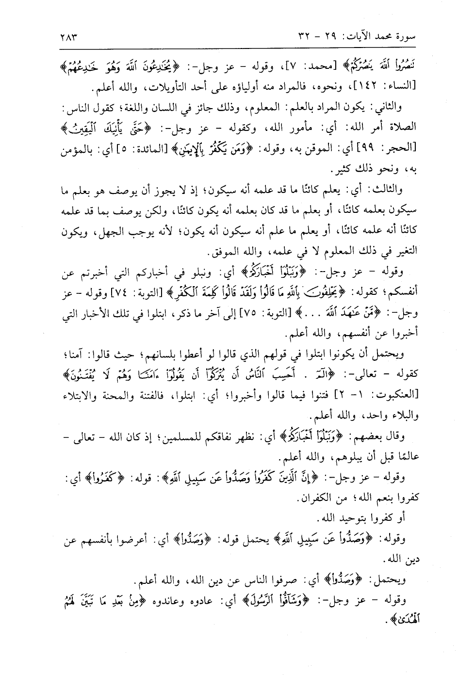 وقوله - عَزَّ وَجَلَّ -: (وَنَبْلُوَ أَخْبَارَكُمْ) أي: ونبلو في أخباركم التي أخبرتم عن أنفسكم؛ كقوله: (يَحْلِفُونَ بِاللَّهِ مَا قَالُوا وَلَقَدْ قَالُوا كَلِمَةَ الْكُفْرِ)، وقوله - عز وجل -: (مَن عَاهَدَ اللَّهَ. . .)، إلى آخر ما ذكر، ابتلوا في تلك الأخبار التي أخبروا عن أنفسهم، واللَّه أعلم.