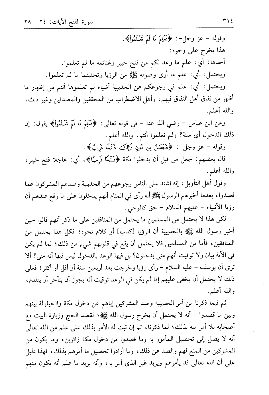 وعن ابن عَبَّاسٍ - رَضِيَ اللَّهُ عَنْهُ - في قوله تعالى: (فَعَلِمَ مَا لَمْ تَعْلَمُوا) يقول: إن ذلك الدخول أي سنة؟ ولم تعلموا أنتم، واللَّه أعلم.