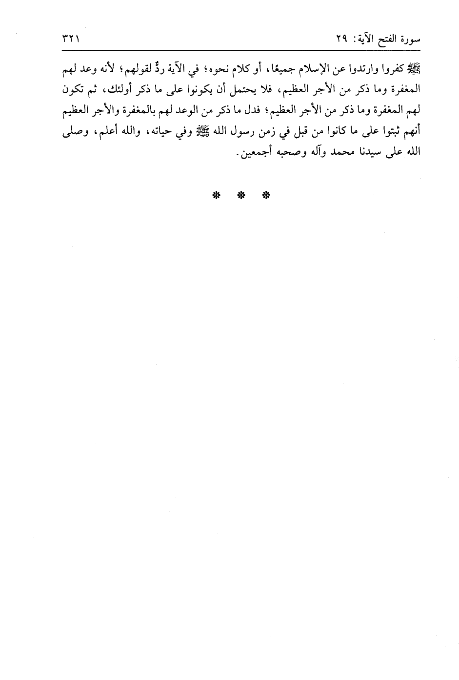كفروا وارتدوا عن الإسلام جميعًا، أو كلام نحوه؛ في الآية ردٌّ لقولهم؛ لأنه وعد لهم المغفرة وما ذكر من الأجر العظيم، فلا يحتمل أن يكونوا على ما ذكر أُولَئِكَ، ثم تكون لهم المغفرة وما ذكر من الأجر العظيم؛ فدل ما ذكر من الوعد لهم بالمغفرة والأجر العظيم أنهم ثبتوا على ما كانوا من قبل في زمن رسول اللَّه - صَلَّى اللَّهُ عَلَيهِ وَسَلَّمَ - وفي حياته، واللَّه أعلم، وصلى اللَّه على سيدنا مُحَمَّد وآله وصحبه أجمعين.