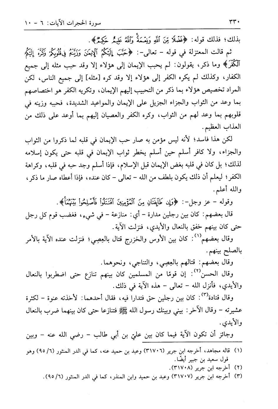 وقوله - عَزَّ وَجَلَّ -: (وَإِنْ طَائِفَتَانِ مِنَ الْمُؤْمِنِينَ اقْتَتَلُوا فَأَصْلِحُوا بَيْنَهُمَا ... (9).