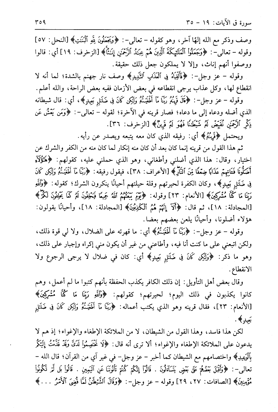 لكن هذا فاسد، وهذا القول من الشيطان، لا من الملائكة الإطغاء والإغواء؛ إذ هم لا يدعون على الملائكة الإطغاء والإغواء؛ ألا ترى أنه قال: (لَا تَخْتَصِمُوا لَدَيَّ وَقَدْ قَدَّمْتُ إِلَيْكُمْ بِالْوَعِيدِ) واختصامهم مع الشيطان كما أخبر - عَزَّ وَجَلَّ - في غير آي من القرآن؛ قال اللَّه - تعالى -: (وَأَقْبَلَ بَعْضُهُمْ عَلَى بَعْضٍ يَتَسَاءَلُونَ. قَالُوا إِنَّكُمْ كُنْتُمْ تَأْتُونَنَا عَنِ الْيَمِينِ. قَالُوا بَلْ لَمْ تَكُونُوا مُؤْمِنِينَ)، وقوله - عَزَّ وَجَلَّ -: (وَقَالَ الشَّيْطَانُ لَمَّا قُضِيَ الْأَمْرُ. . .)
