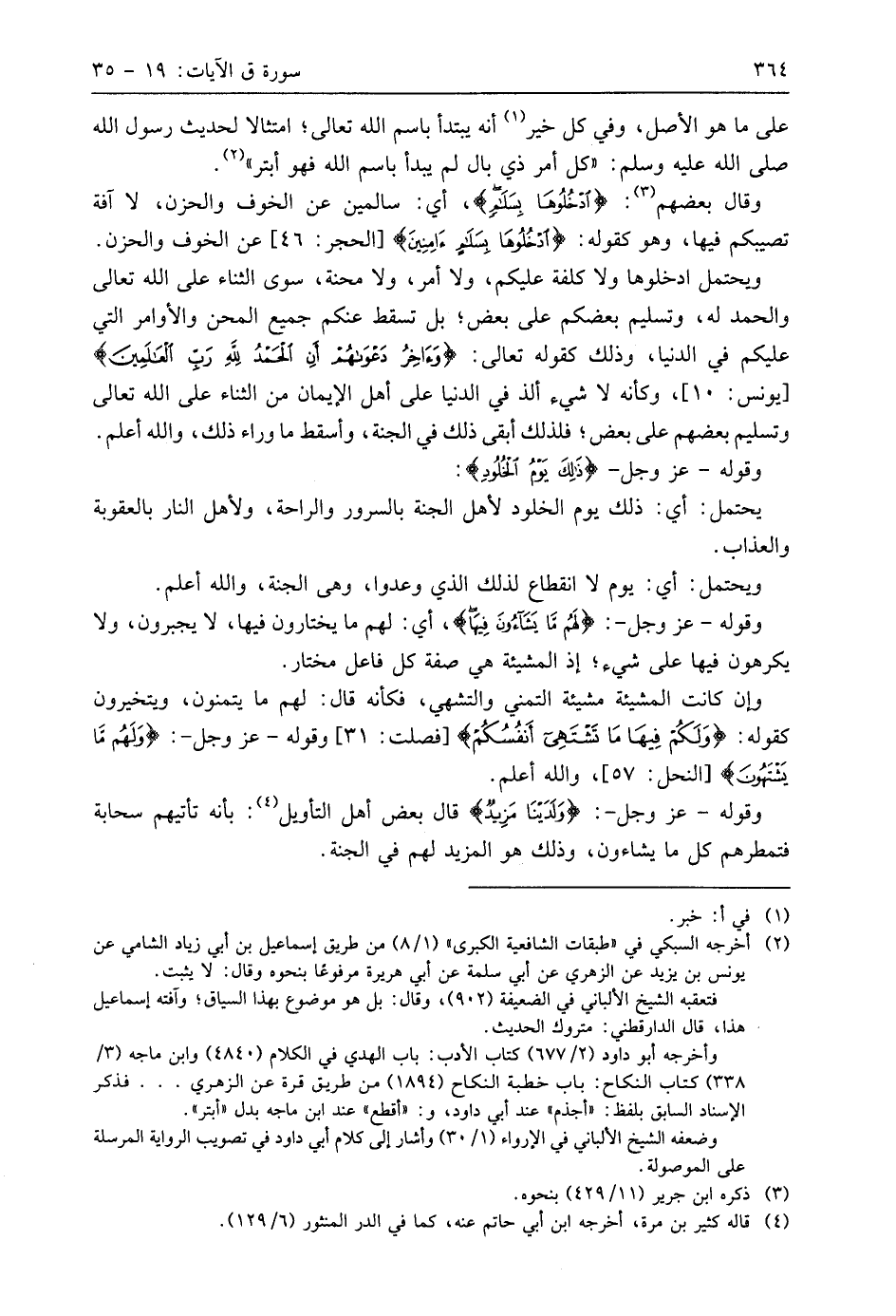 على ما هو الأصل، وفي كل خير أنه يبتدأ باسم اللَّه تعالى؛ امتثالا لحديث رسول الله صَلَّى اللَّهُ عَلَيهِ وَسَلَّمَ: " كل أمر ذي بال لم يبدأ باسم اللَّه فهو أبتر ".