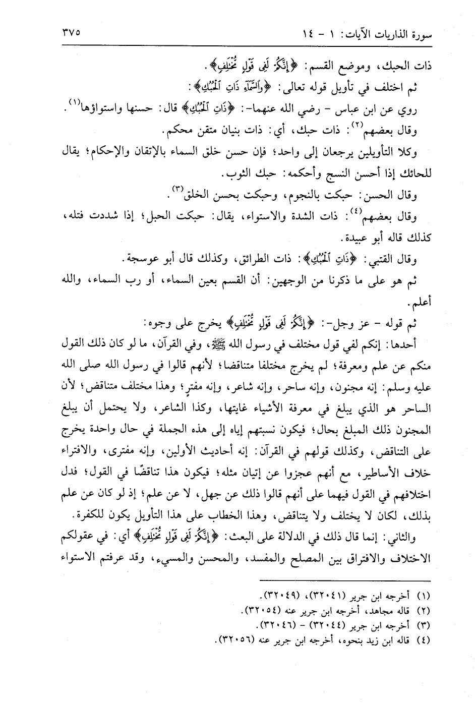 روي عن ابن عَبَّاسٍ - رضي اللَّه عنهما -: (ذَاتِ الْحُبُكِ) قال: حسنها واستواؤها.