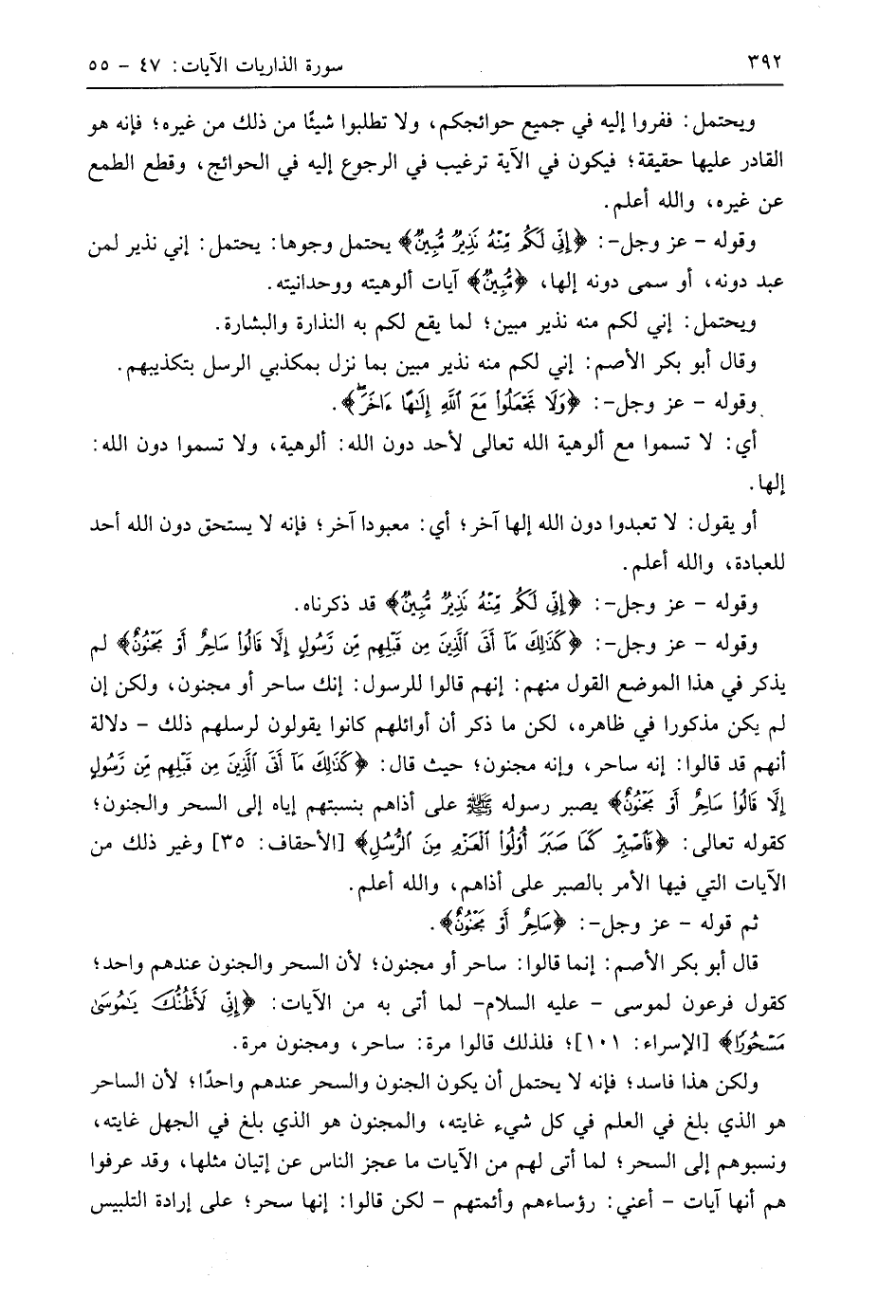 وقوله - عَزَّ وَجَلَّ -: (وَلَا تَجْعَلُوا مَعَ اللَّهِ إِلَهًا آخَرَ إِنِّي لَكُمْ مِنْهُ نَذِيرٌ مُبِينٌ (51).