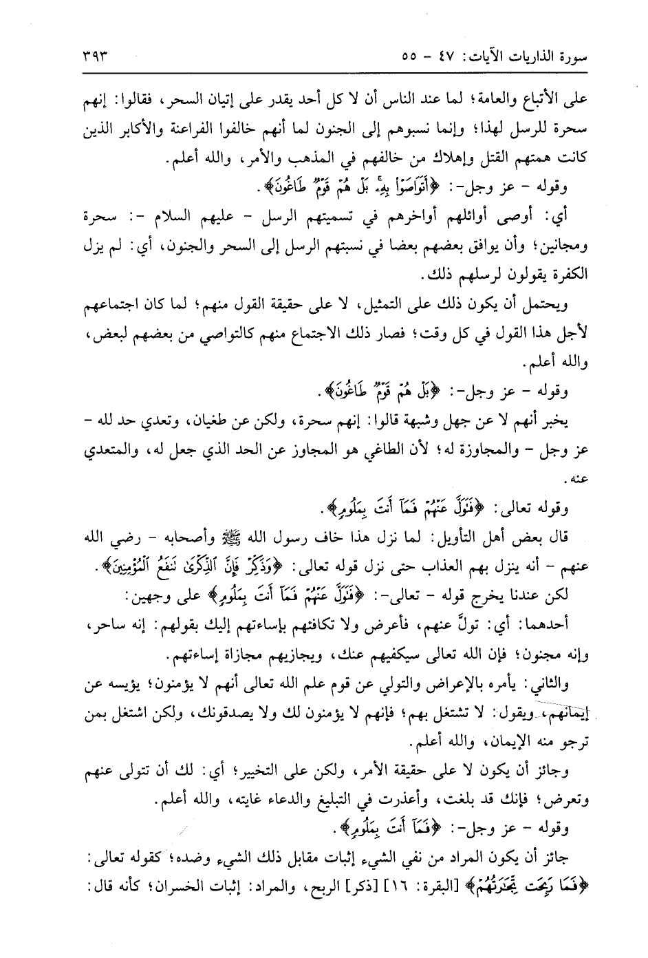 وقوله تعالى: (فَتَوَلَّ عَنْهُمْ فَمَا أَنْتَ بِمَلُومٍ (54).