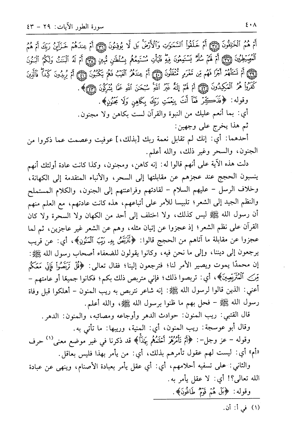 وقوله - عَزَّ وَجَلَّ -: (أَمْ تَأْمُرُهُمْ أَحْلَامُهُمْ بِهَذَا ... (32) قد ذكرنا في غير موضع معنى حرف " أم " أي: ليست لهم عقول تأمرهم بذلك، أي: من يأمر بهذا فليس بعاقل.