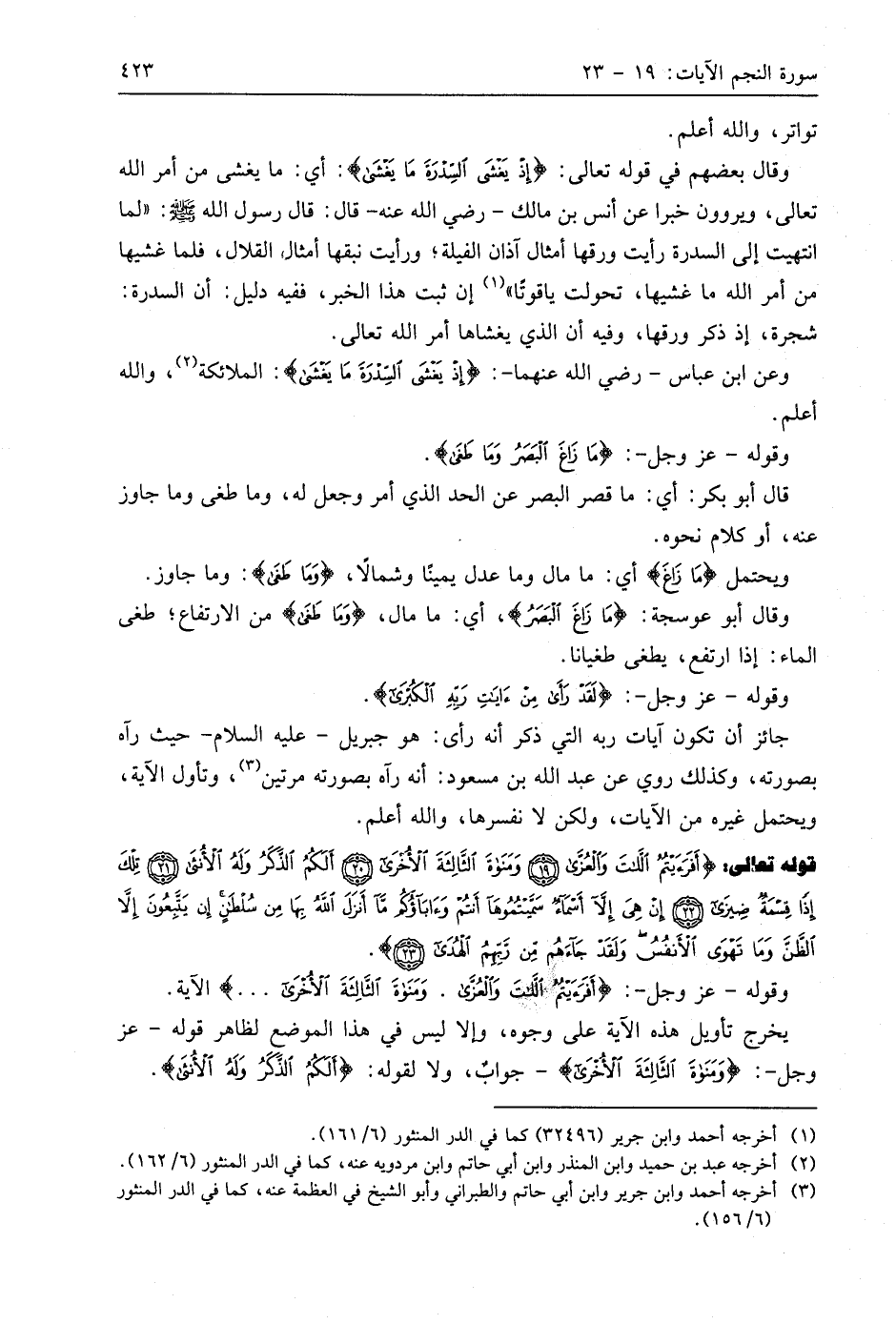 وقوله - عَزَّ وَجَلَّ -: (لَقَدْ رَأَى مِنْ آيَاتِ رَبِّهِ الْكُبْرَى (18).