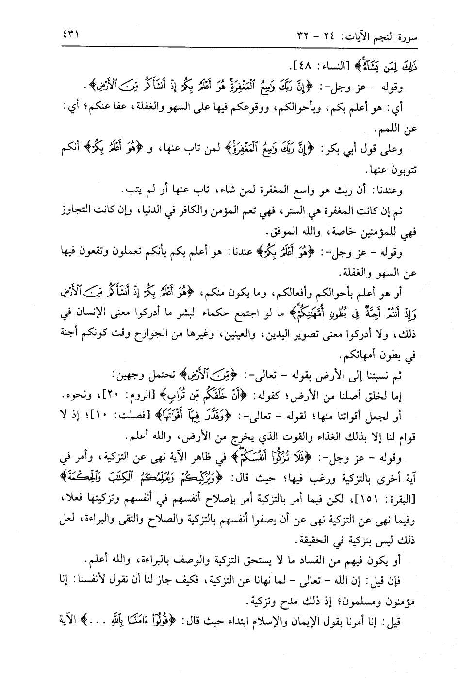 وقوله - عَزَّ وَجَلَّ -: (إِنَّ رَبَّكَ وَاسِعُ الْمَغْفِرَةِ هُوَ أَعْلَمُ بِكُمْ إِذْ أَنْشَأَكُمْ مِنَ الْأَرْضِ).