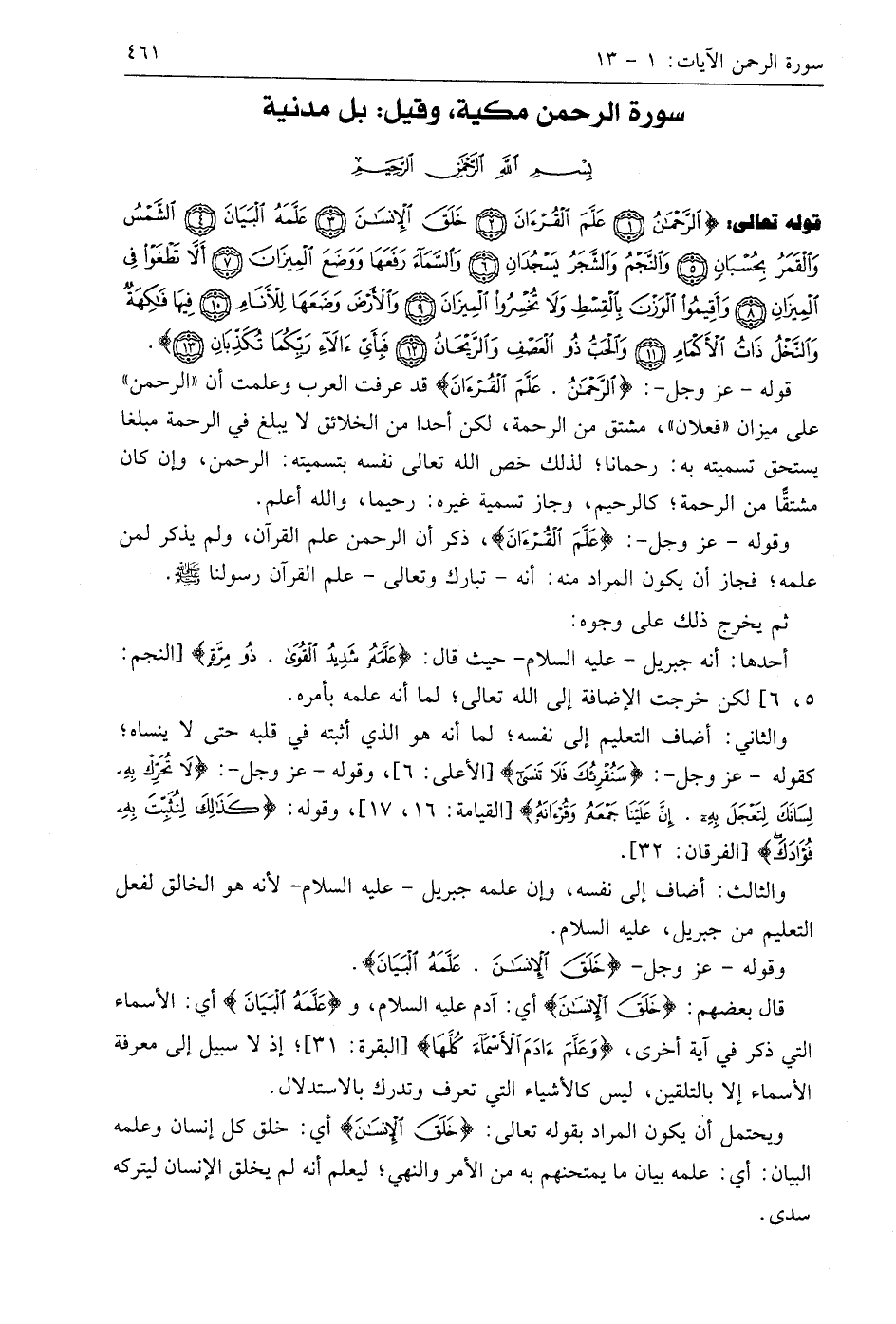 سُورَةُ الرَّحْمَنِ مَكِّيَّة، وقيل: بل مدنية